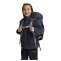 • the technical details include a hip belt, a chest strap, a fastening for trekking poles, and reflective details.