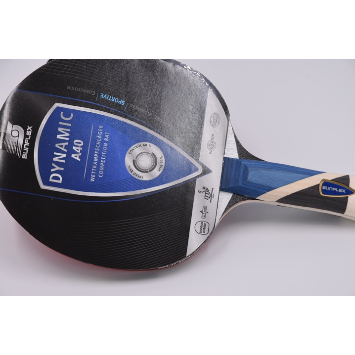 • Competition racket sunflex DYNAMIC A40 with 2.1 mm sponge and Shogun rubber, ITTF approved, Hollow Handle for weight reduction, Ergo Grip and anatomical handle