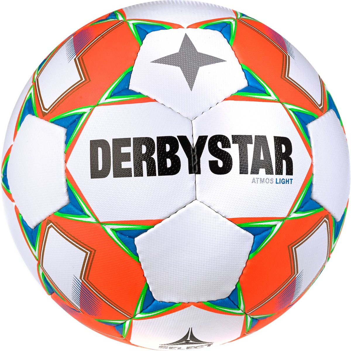 Derbystar Football Atmos Light AG (ideal for E and D youth, artificial grass ball, 350g) white/blue/orange - 1 ball