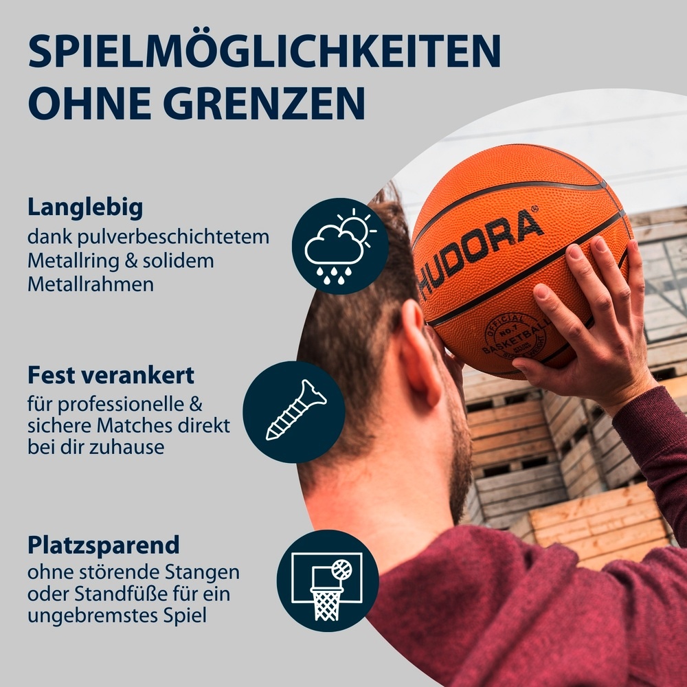 • whether alone or with friends: The Hudora basketball board with (strongly) spring-loaded dunk ring invites cool slam dunks