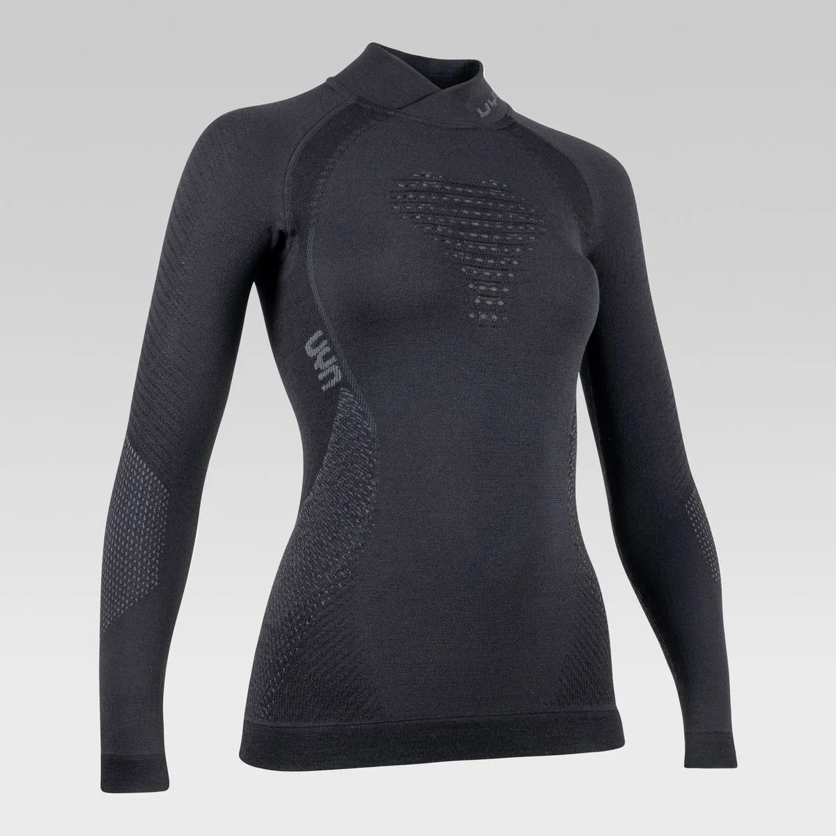 UYN Long Sleeve Fusyon Turtleneck (made of high-quality merino wool, soft, with roll neck) black/anthracite grey Women