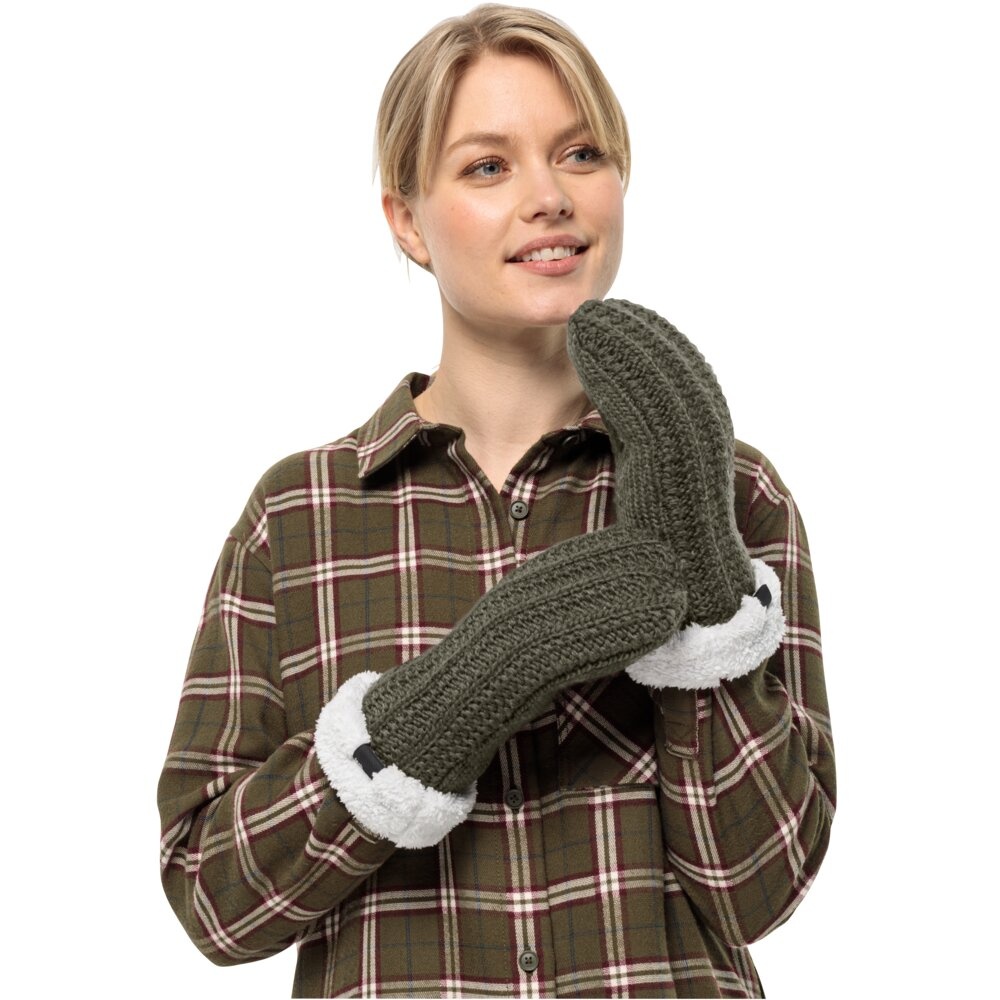 Jack Wolfskin Winter Gloves (Mittens) Highloft Knit Mitten (made of soft Sherpa fleece, warm) moss green Women
