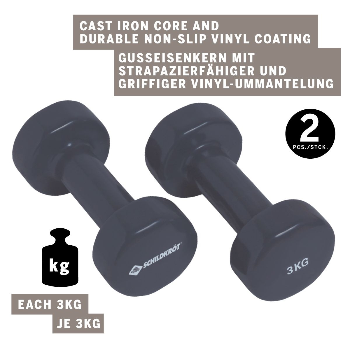 • two dumbbells in a set (Anthracite / each 3.0kg) with cast iron core and vinyl coating
