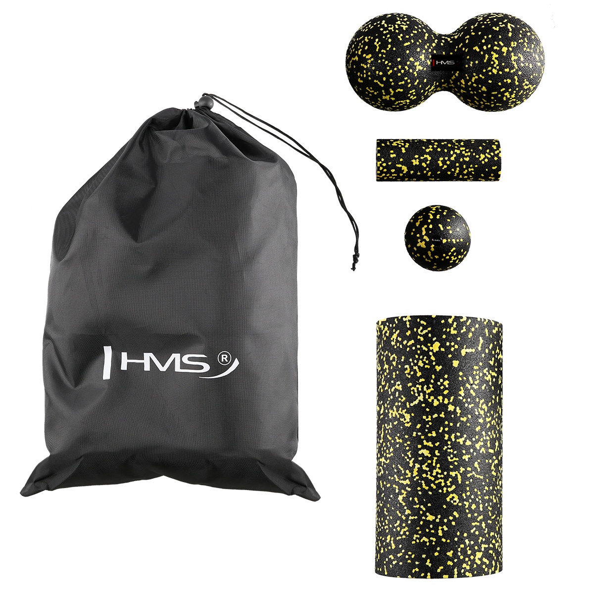 HMS Fitness Massage Set Pro FSBM04 (Massage roller, mini roller, single ball and duo ball) black/yellow