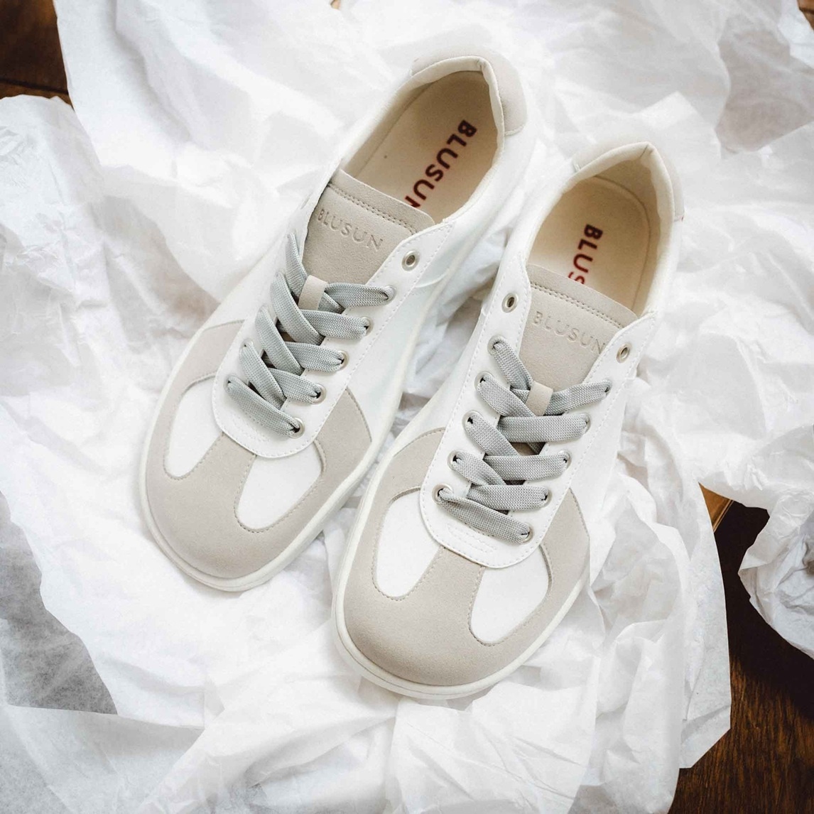 Blusun Barefoot Shoes Sneakers BLSN-201W (Smooth Leather/Suede) white/grey Ladies