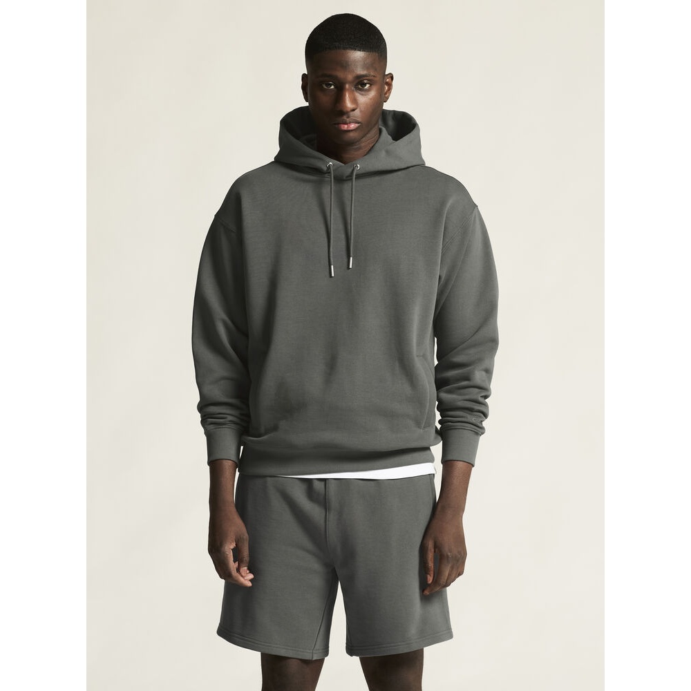 • This casual, versatile hoodie is made from heavy cotton fabric with loopback and small loops on the back of the fabric.