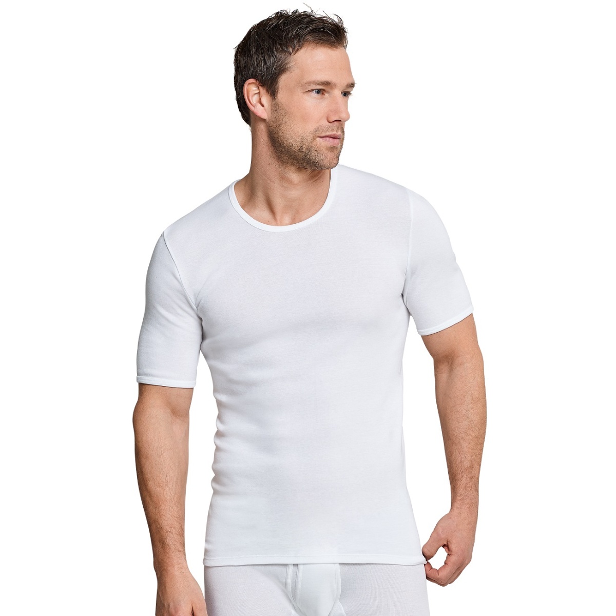 • this white men's short-sleeved shirt from the SCHIESSER series "Original Classics" combines traditional fine ribbed fabric with high comfort