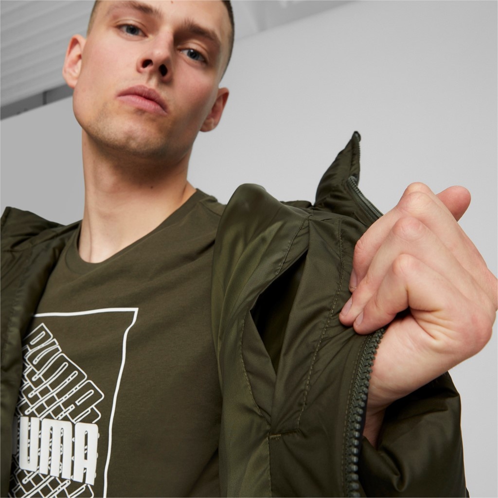 Puma Down Winter Jacket Power Hooded Down Puffer dark green Men