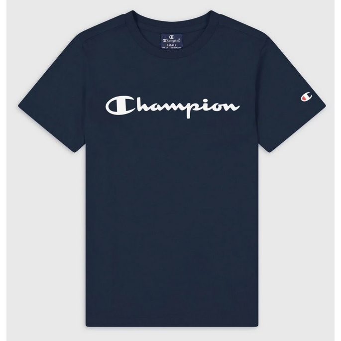 Champion Leisure T-shirt (Cotton) Crew with Logo Lettering 2023 Navy Blue Boys