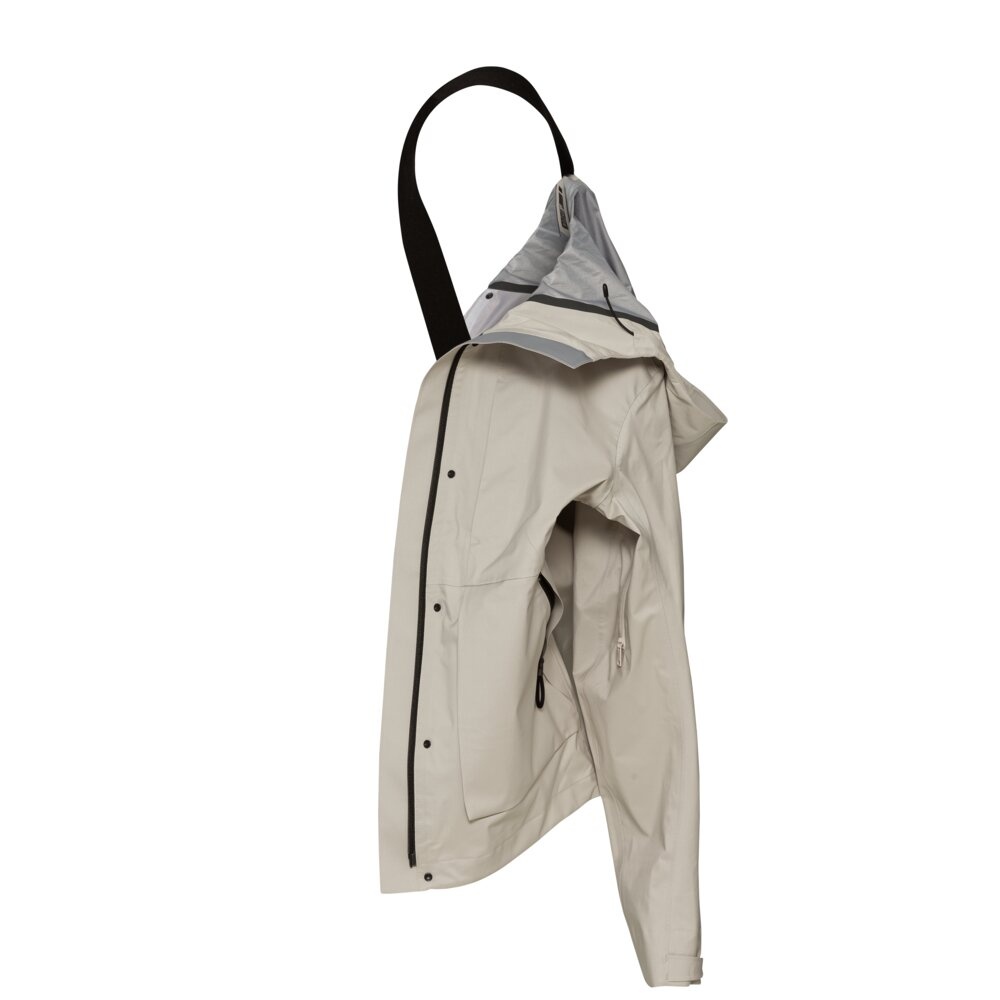 • the thin weather protection jacket has two shoulder straps inside, so it can be easily carried on the back like a backpack when not in use