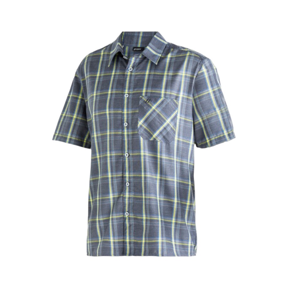 Maier Sports Travel/Hiking Shirt Mauro (Chest Pocket, Quick-Drying) Grey/Blue/Lime Men's