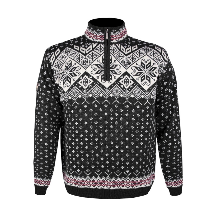 Kama Sweater Pullover 4082 Half Zip with Nordic Pattern (Merino Wool) black Men's