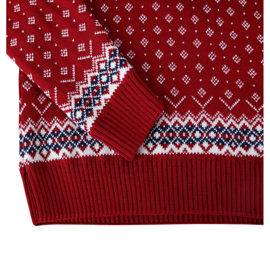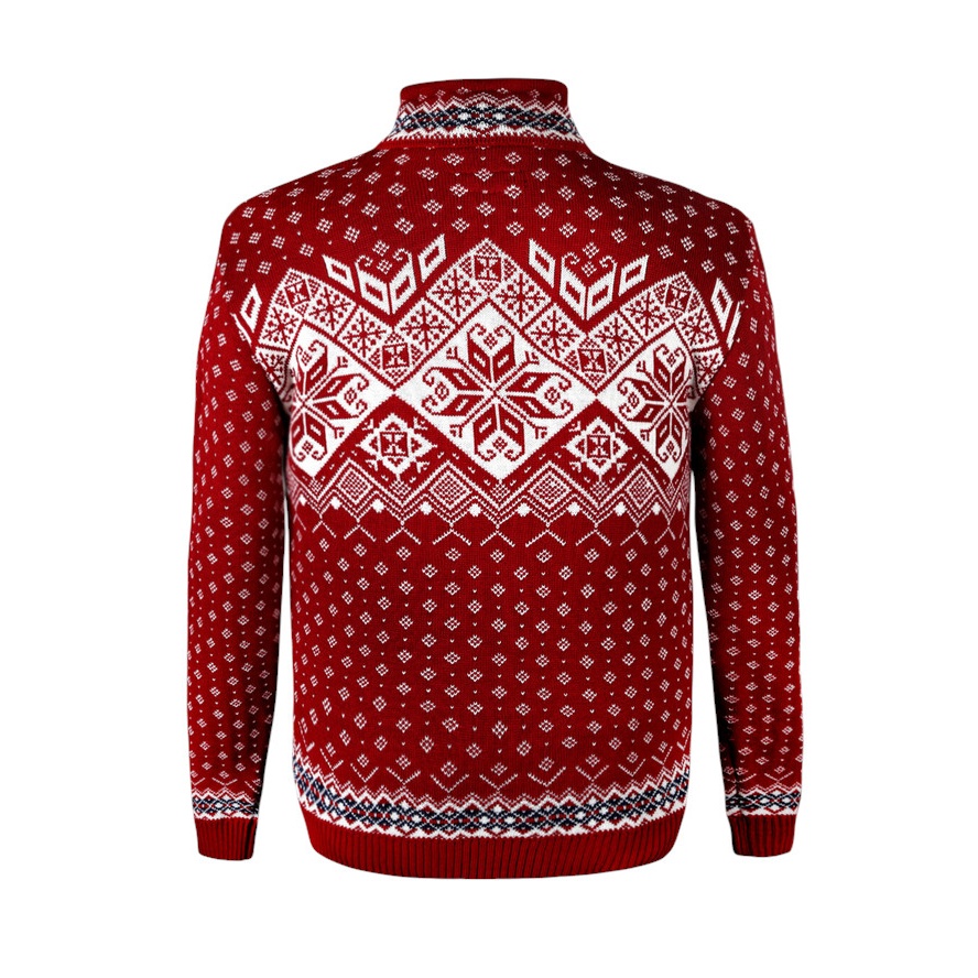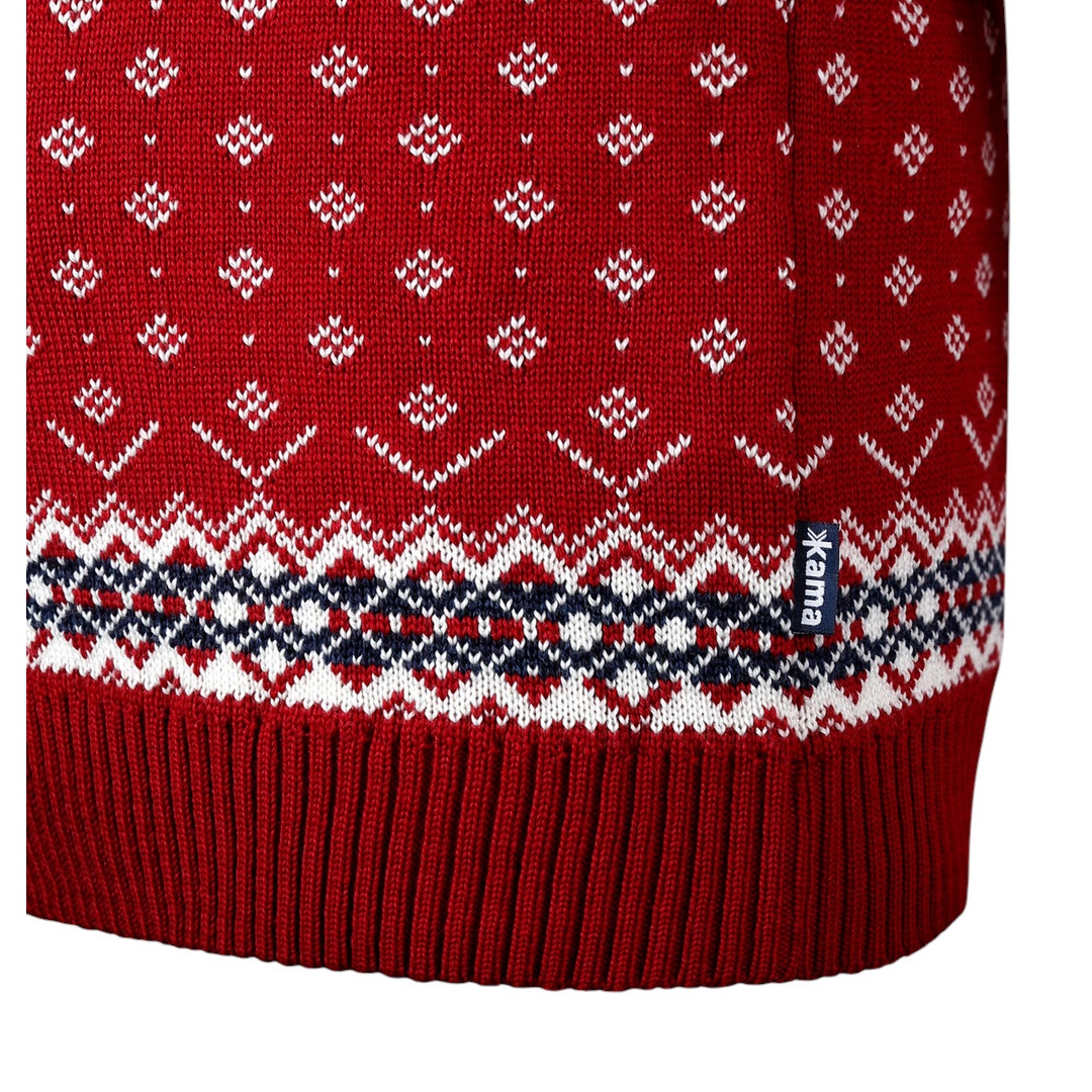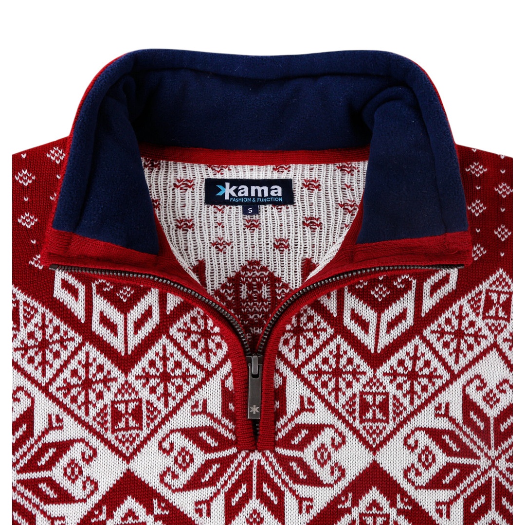 Kama Sweater Pullover 4082 Half Zip with Nordic Pattern (Merino Wool) red Men's