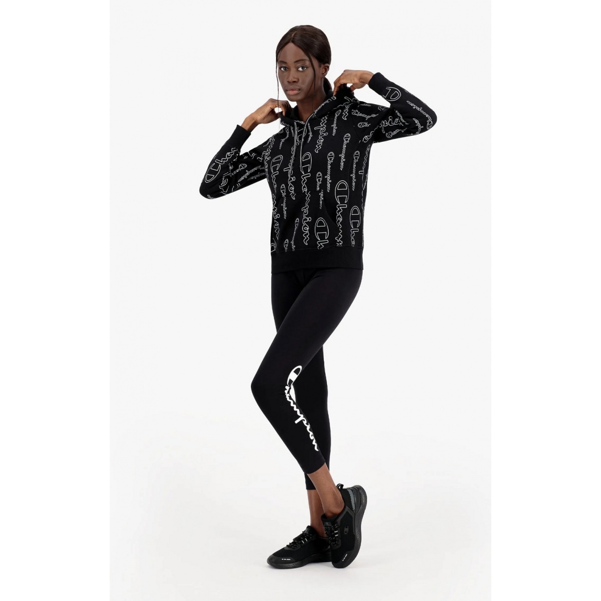 Champion Hoodie American Classic Graphic Logo Black Women