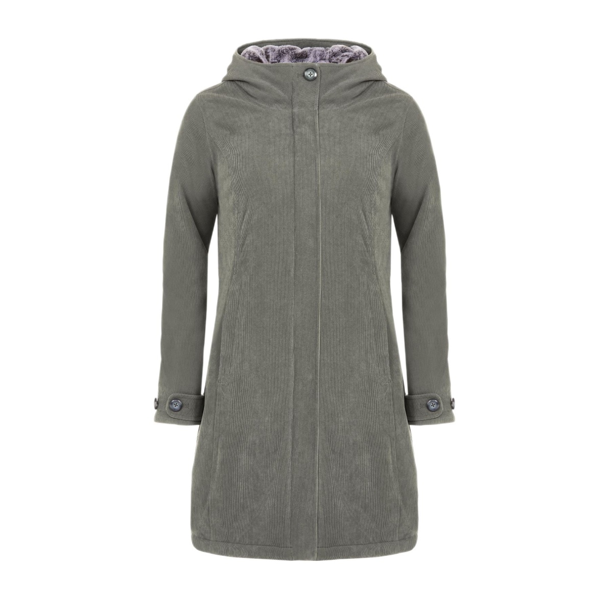 • The slightly tailored cut and the perfect length for winter activities make the women's cord coat highly attractive.