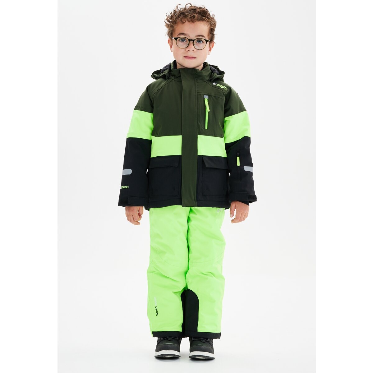 Zigzag Winter Ski Jacket Taylora W-PRO 15,000 (4-way stretch, waterproof, windproof) black/lime/green children
