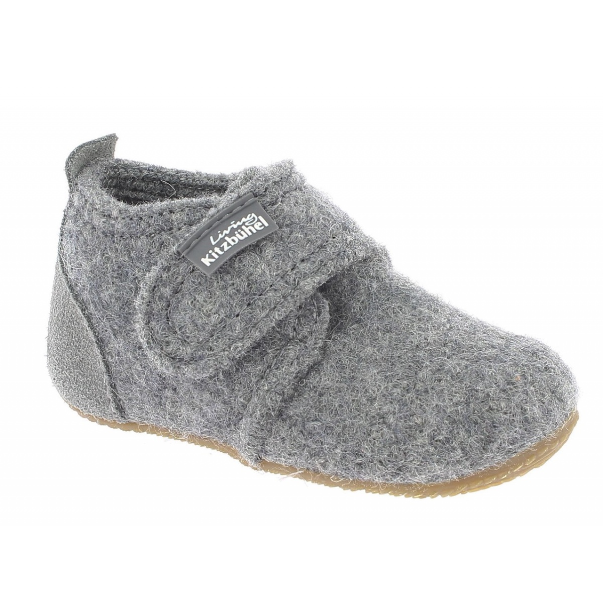 Living Kitzbühel Slippers Velcro Model Velour Leather Cap Felt (Merino Wool) Kids Grey Toddlers (27-30)