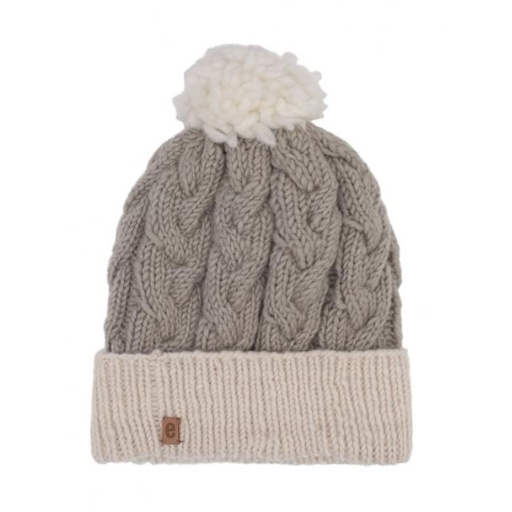 Medima Winter hat with pom pom - Merino wool, ribbed structure, cuff - grey - 1 piece
