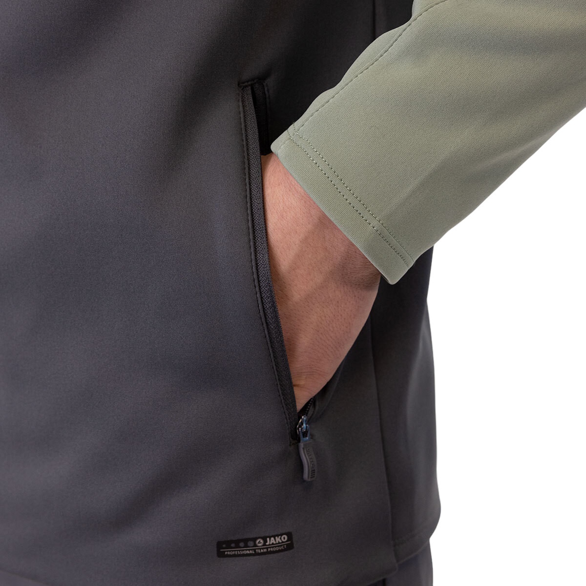 JAKO Hooded Jacket Iconic (Polyester Fleece, Side Pockets with Zip) Anthracite Grey/Mint Green Men