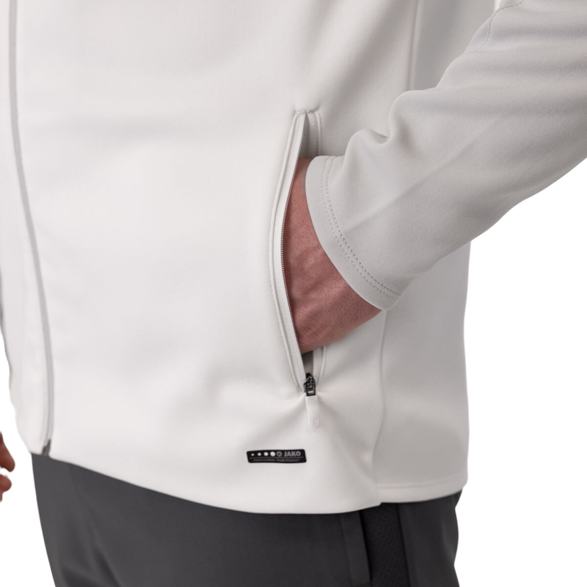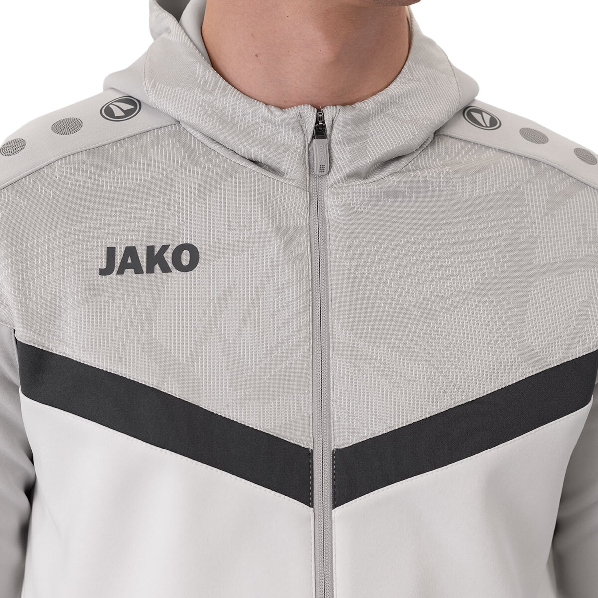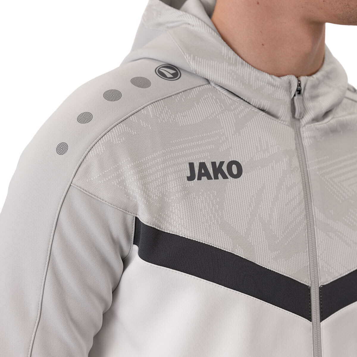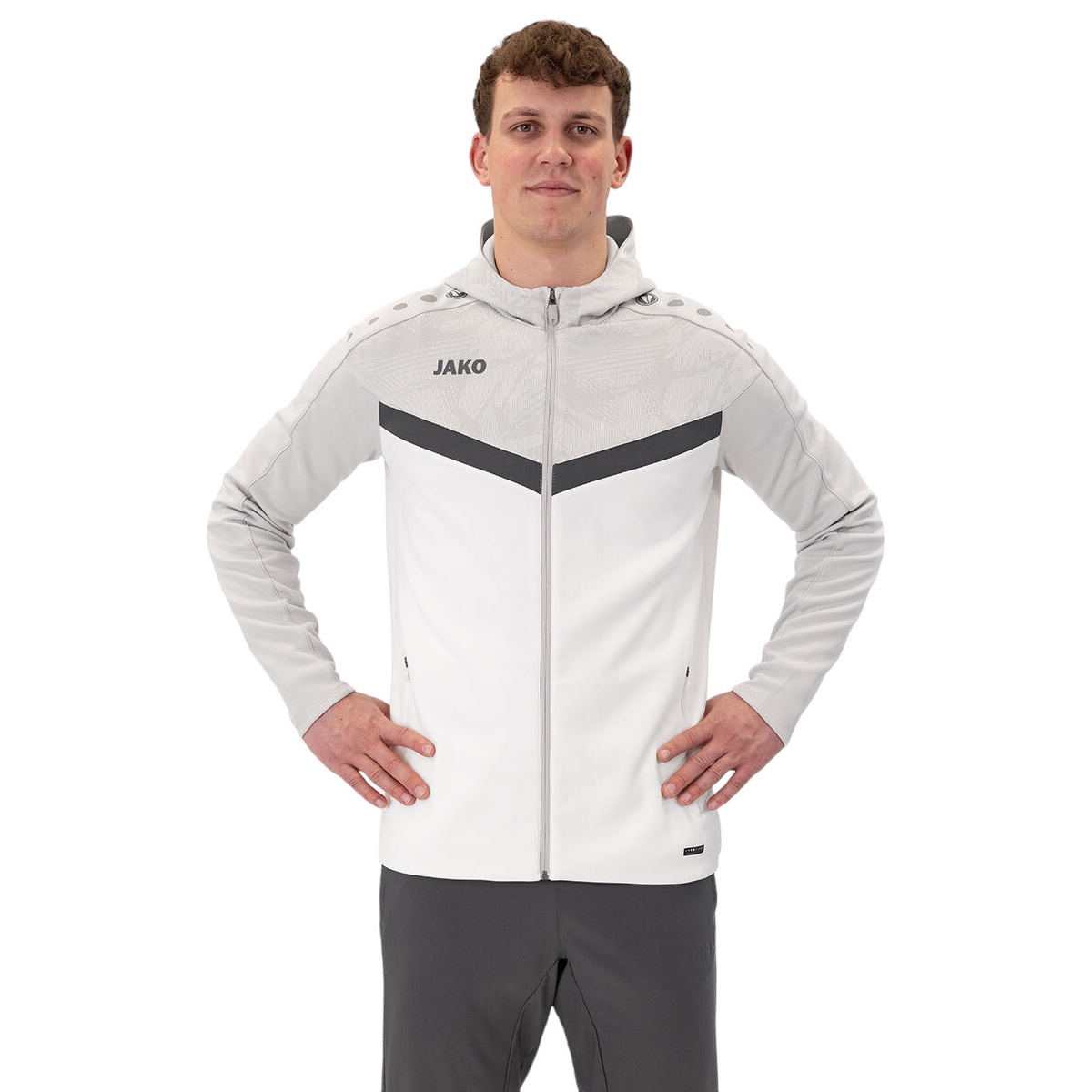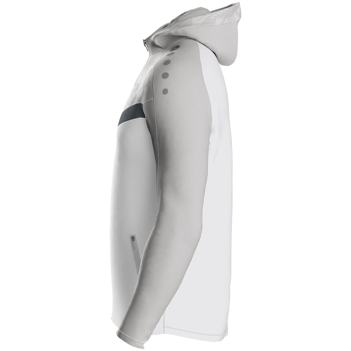 JAKO Iconic Hooded Jacket (Polyester Fleece, Side Pockets with Zip) white/light grey/charcoal grey Men's