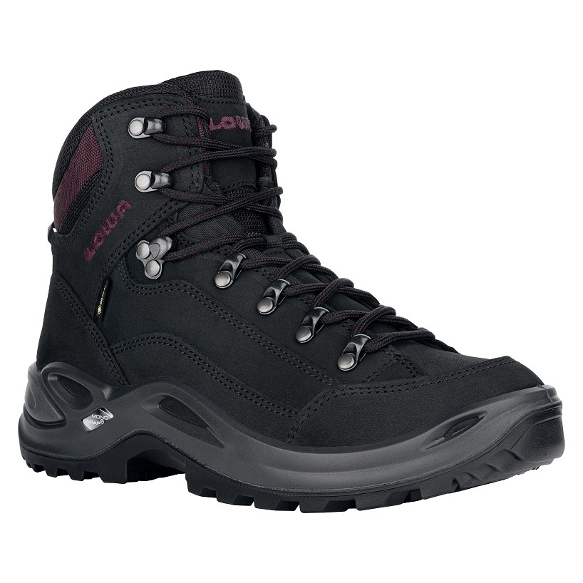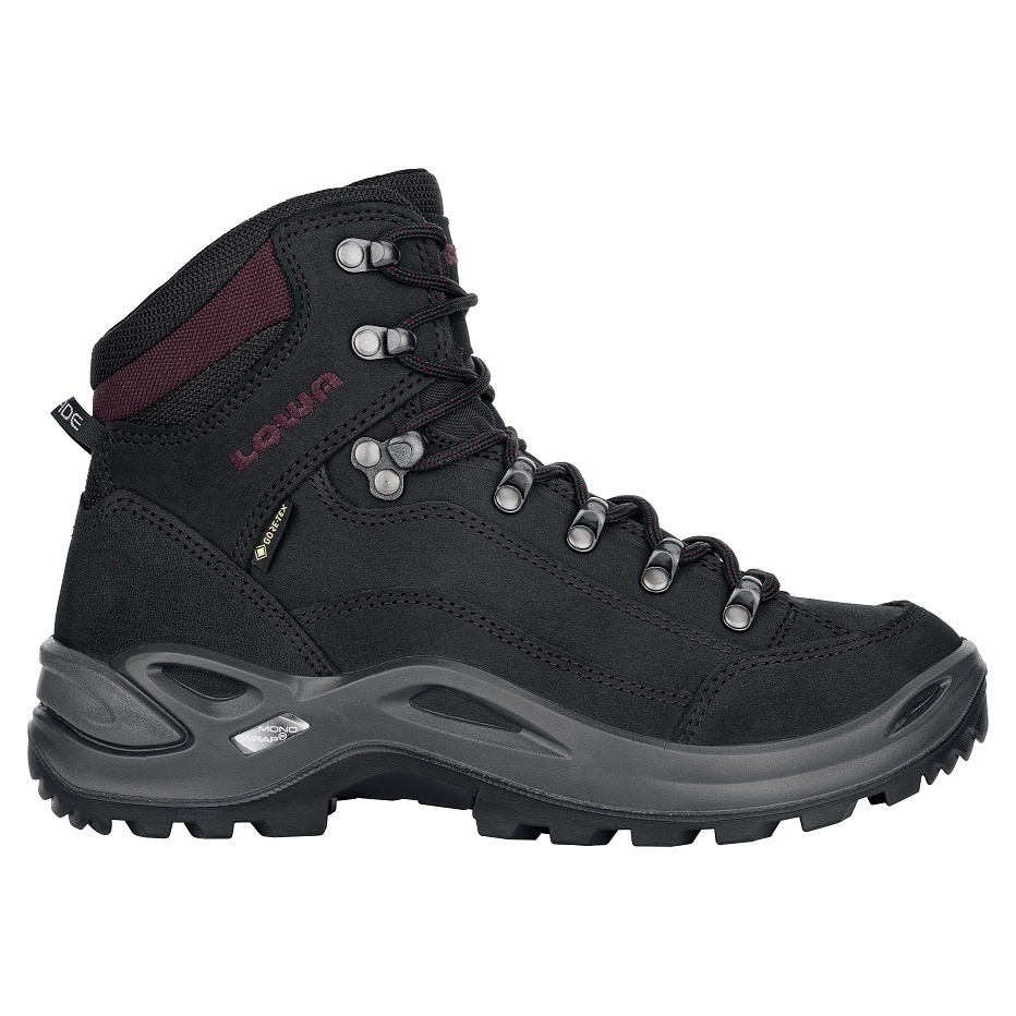 Lowa Hiking Boots Renegade Mid GTX (All-Terrain, Nubuck Leather, waterproof) black/bordeaux Women