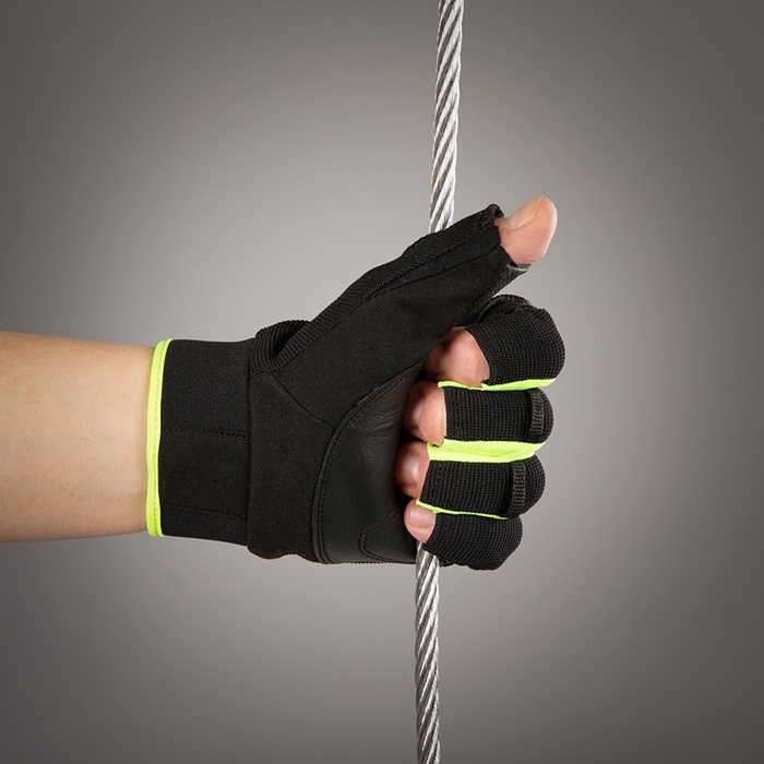Chiba Climbing Gloves Via Ferrata X-Trem (Quickpull Removal Aid, made of Nappa Leather) black/neon yellow - 1 Pair