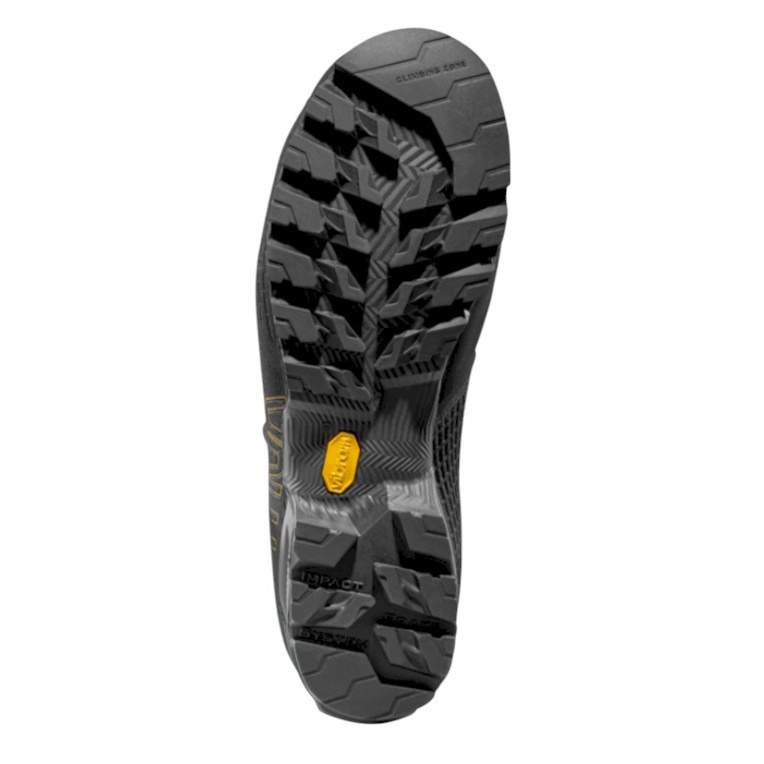 • The TPU strip at the back of the shoe simplifies the attachment of crampons, and the cushioning Vibram® Cube Evo sole, along with the *Climbing zone in the toe area, allows for precise foot placement and reliable grip when climbing gets serious.