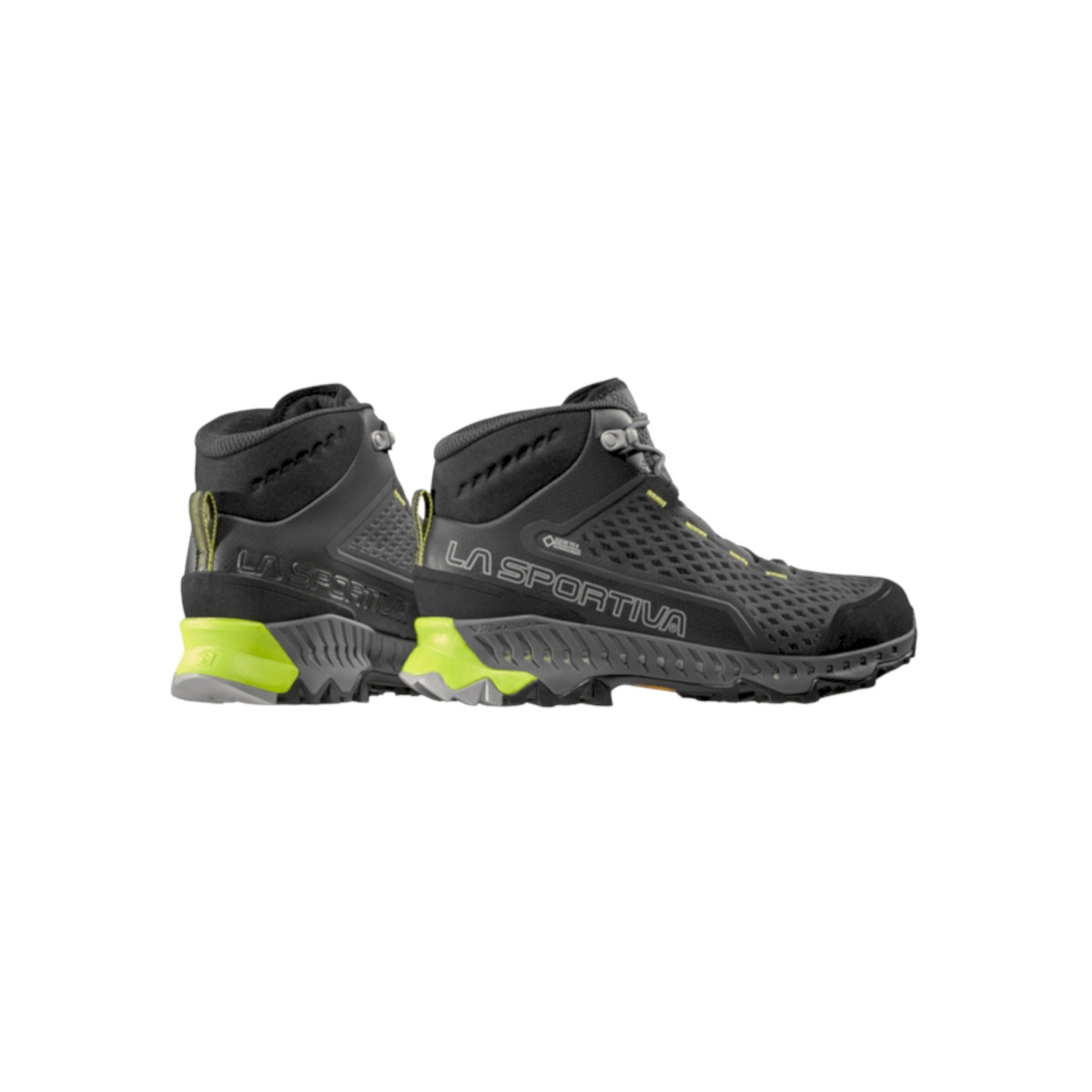 • It uses solutions that are part of La Sportiva's DNA and combines them with concepts and technologies from the Mountain Running world, for a versatile and, thanks to the new GORE-TEX SURROUND® technology, waterproof product: an exclusive solution that allows total breathability, as the ventilation surface of the upper, insole, and midsole in EVA has been increased with perforated TPU on the sides.
