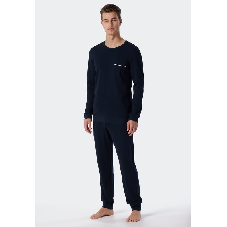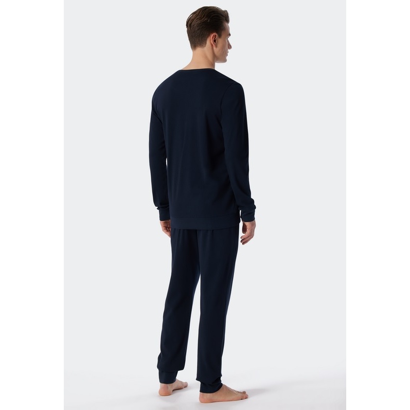 Schiesser Pyjama Fine Interlock Organic Cotton long dark blue Men