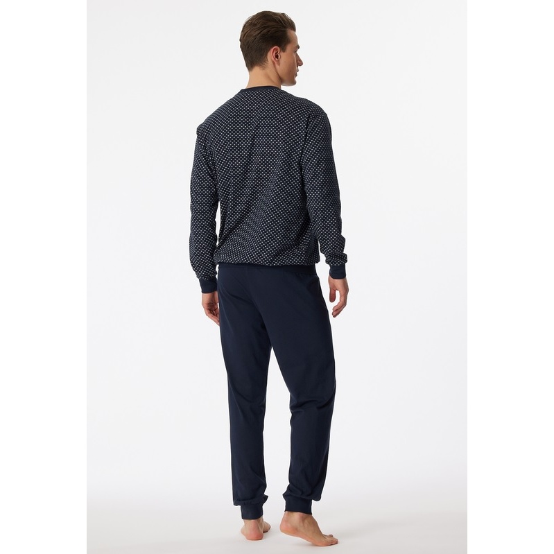 Schiesser Underwear Pyjamas Dark Sapphire Organic Cotton long - patterned dark blue Men