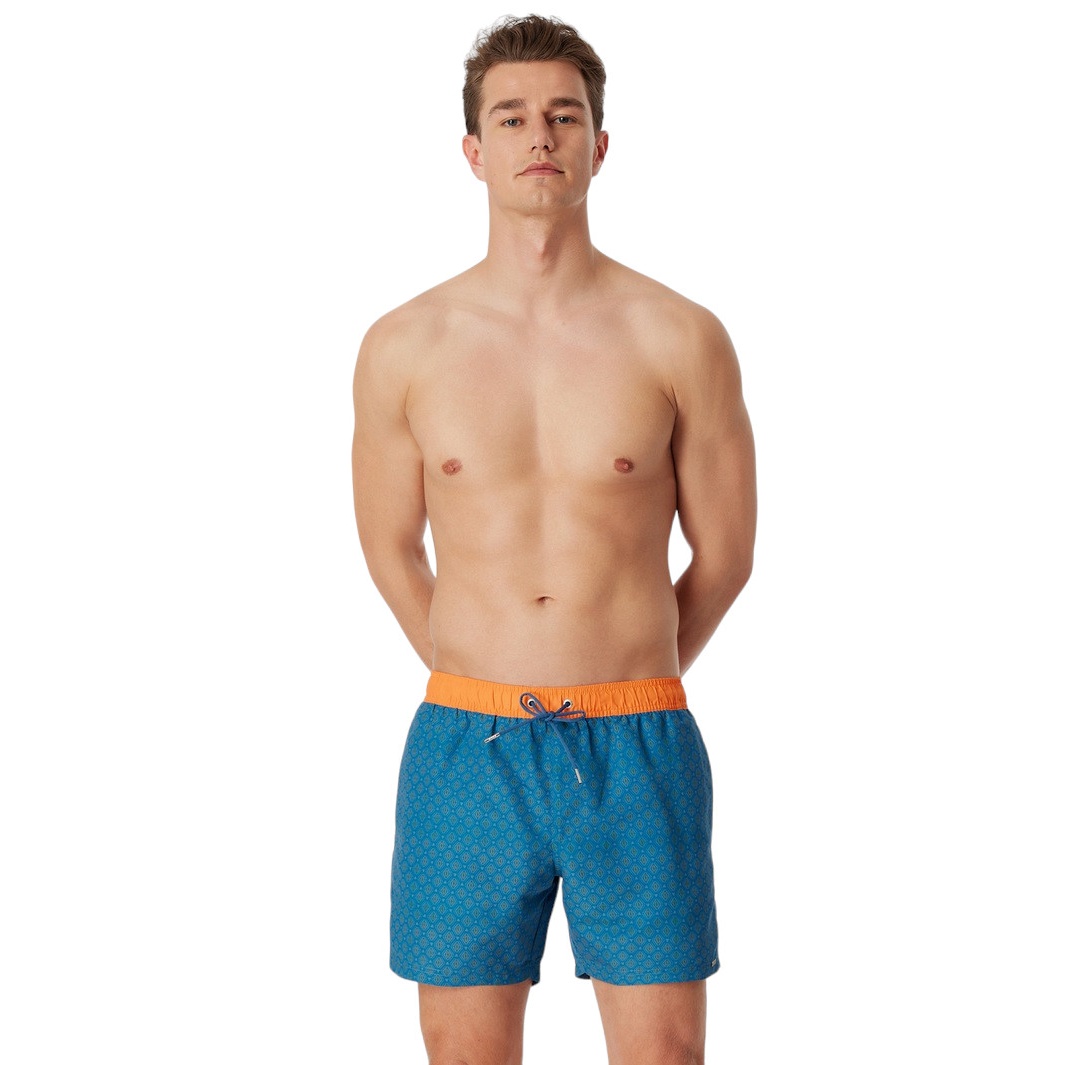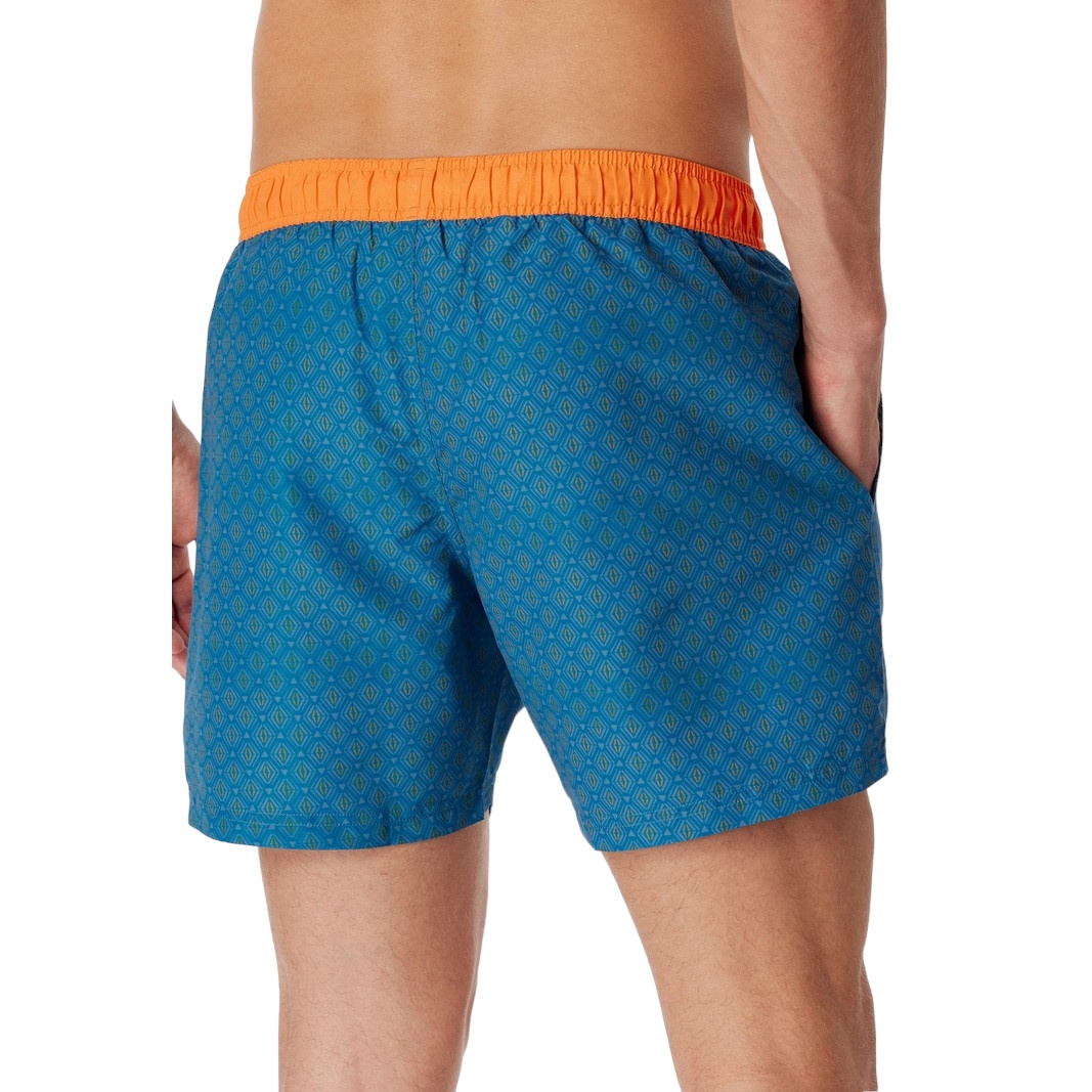 Schiesser Swim Shorts Woven Diamond Pattern Petrol/Orange Men's