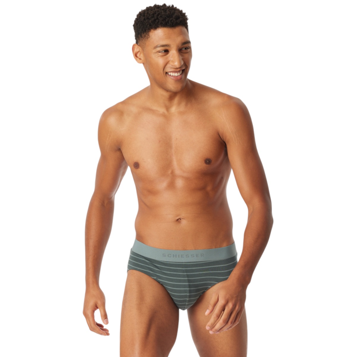 Schiesser Rio Slip Organic Cotton Web Elastic Waistband (Briefs) dark blue/mineral green/striped men's - 3 pieces