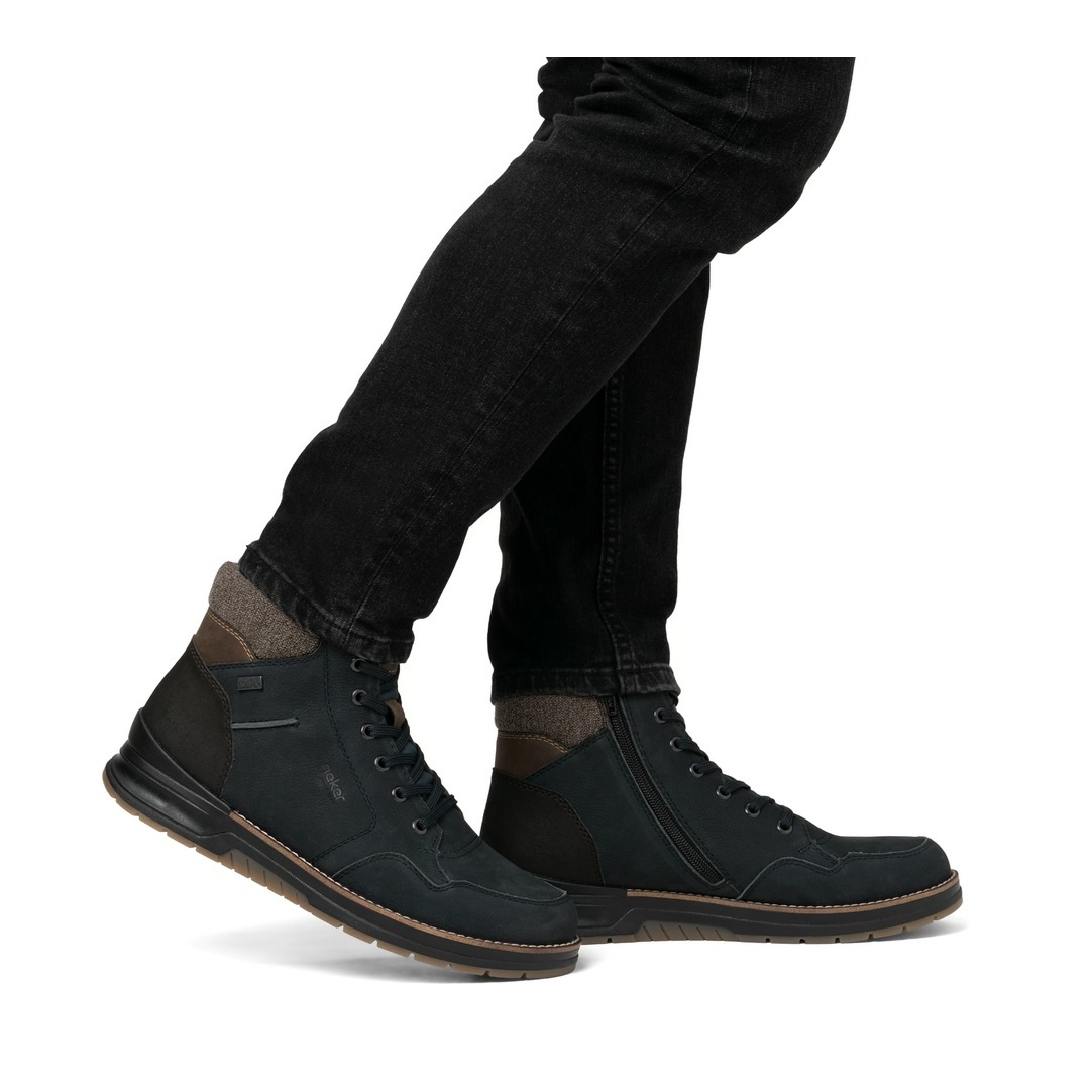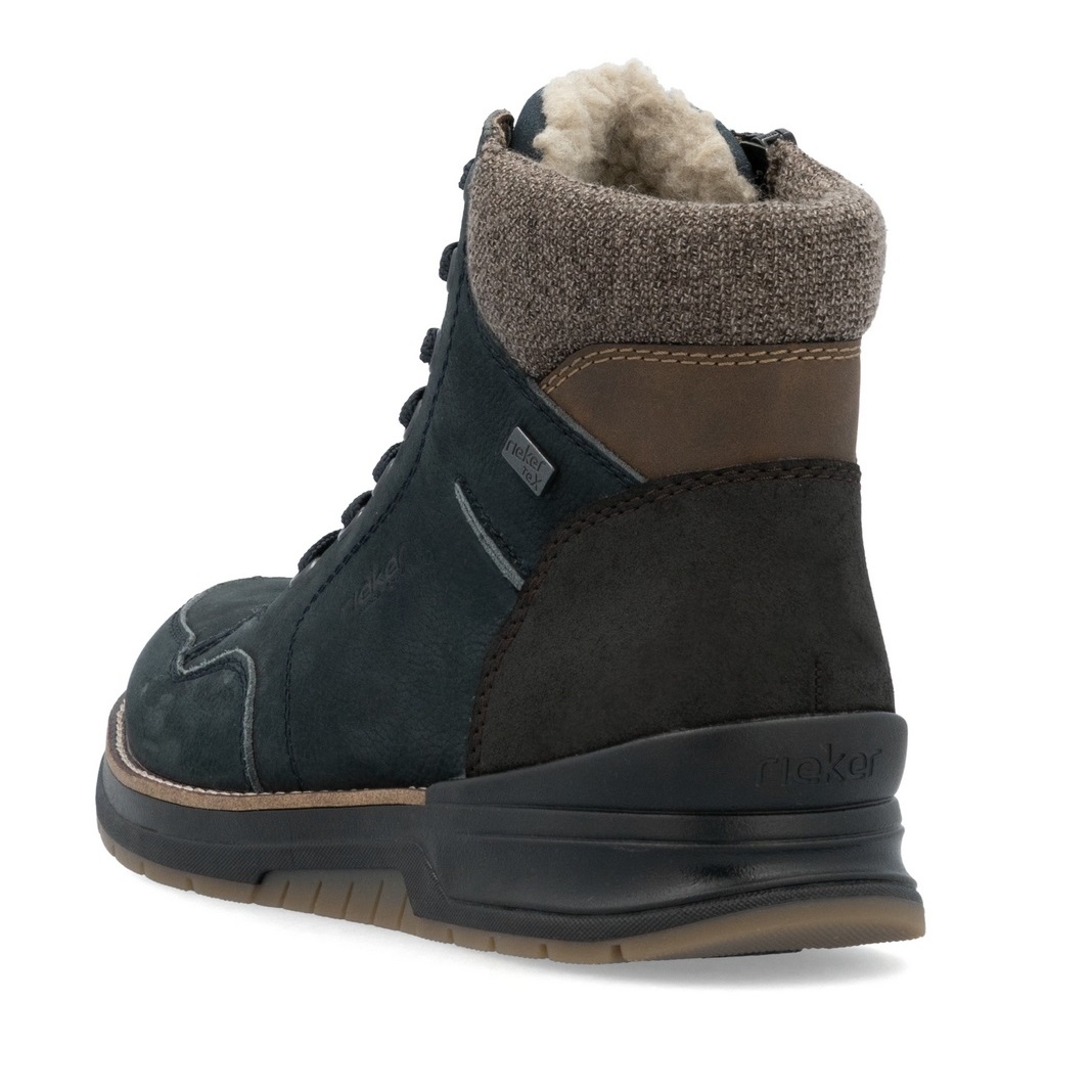 Rieker Winter Boots 32344-14 (Lace-up boots with lining, smooth leather) navy blue men's