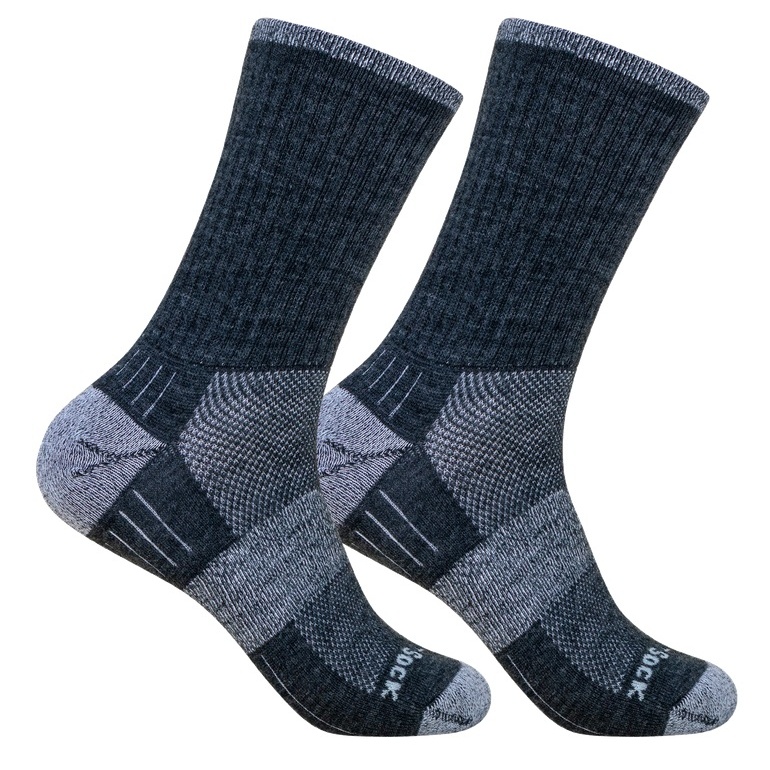 • Double-layer anti-blister socks with a Merino wool blend and extra terry cushioning for long hikes and winter sports