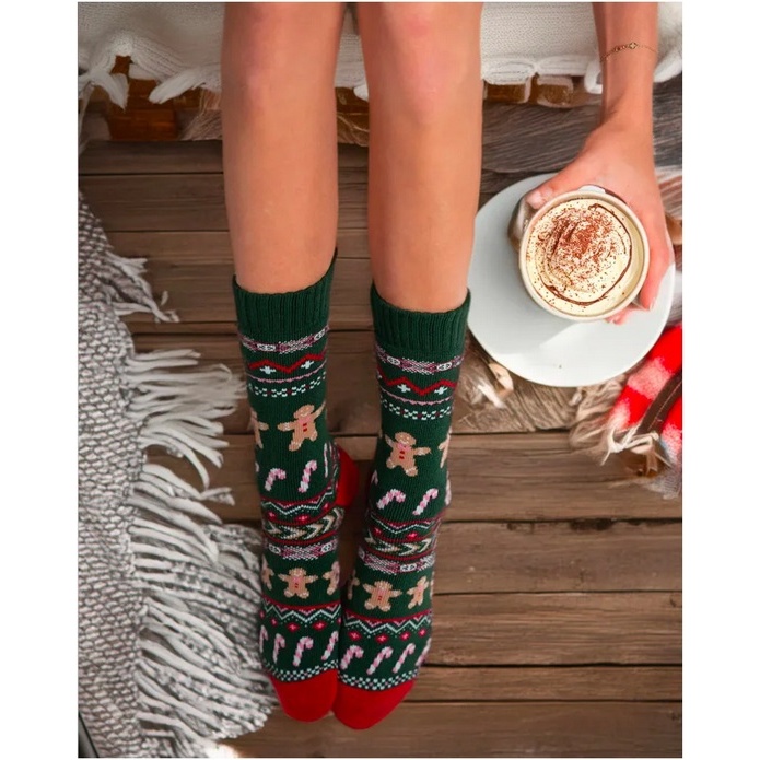 Polar Star Daily Sock Crew Honninka (Christmas, Cotton, Warm) Green - 1 Pair