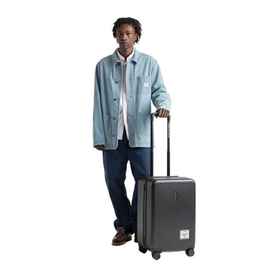 • Herschel Heritage™ Hardshell Large Carry On Luggage is made from 70% recycled polycarbonate and is impact-resistant and sturdy enough to handle all travels