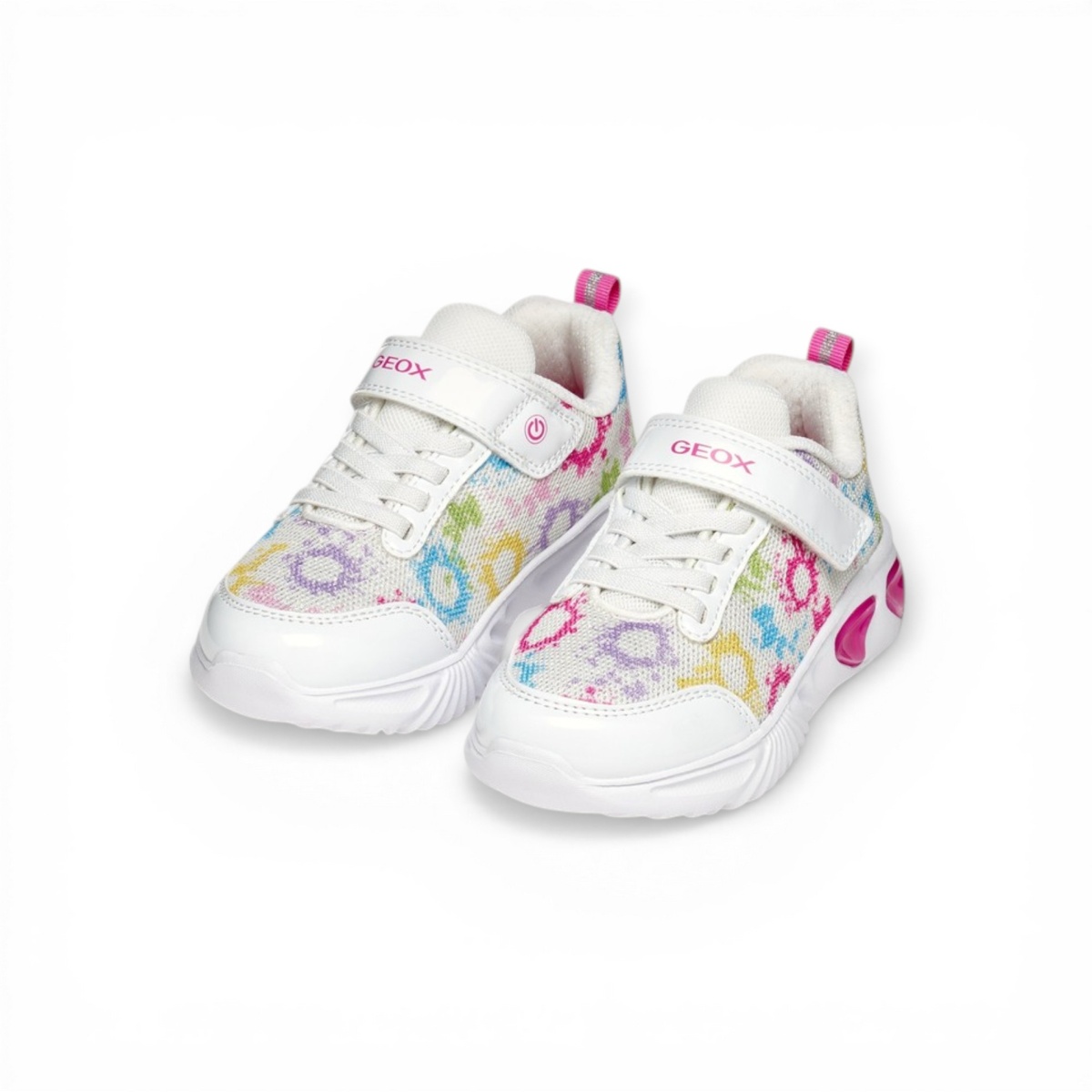• It is made from glossy printed fabric and patent-like material and has integrated lights in the sole that provide fun with every step.