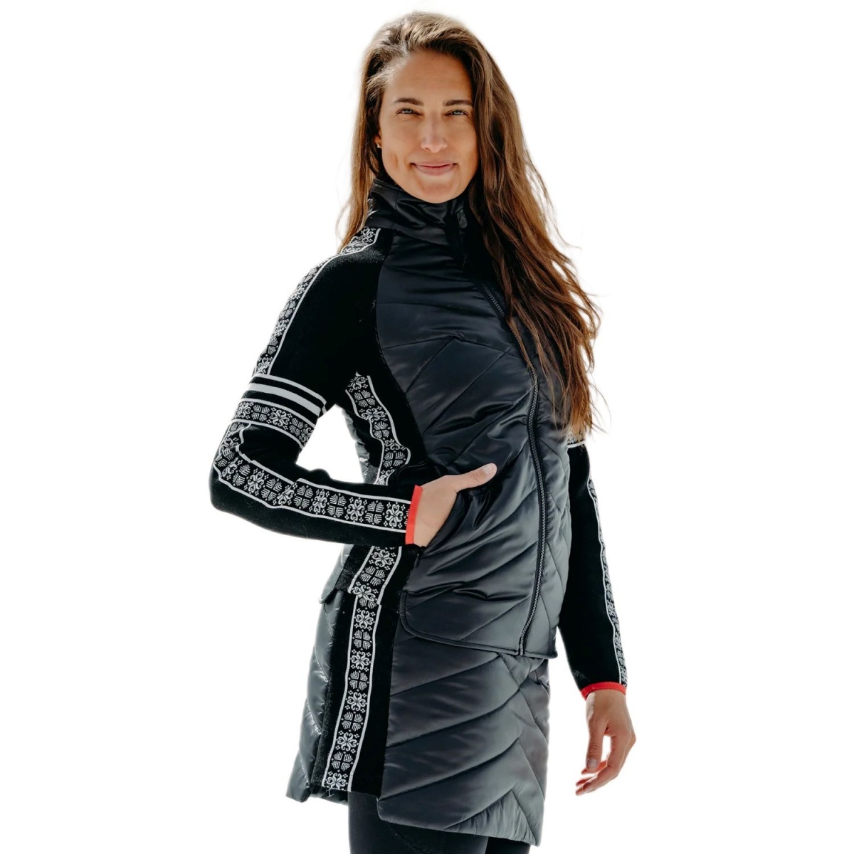 • It is designed as an intermediate layer and features knitted sleeves and a lightly insulated, quilted body.