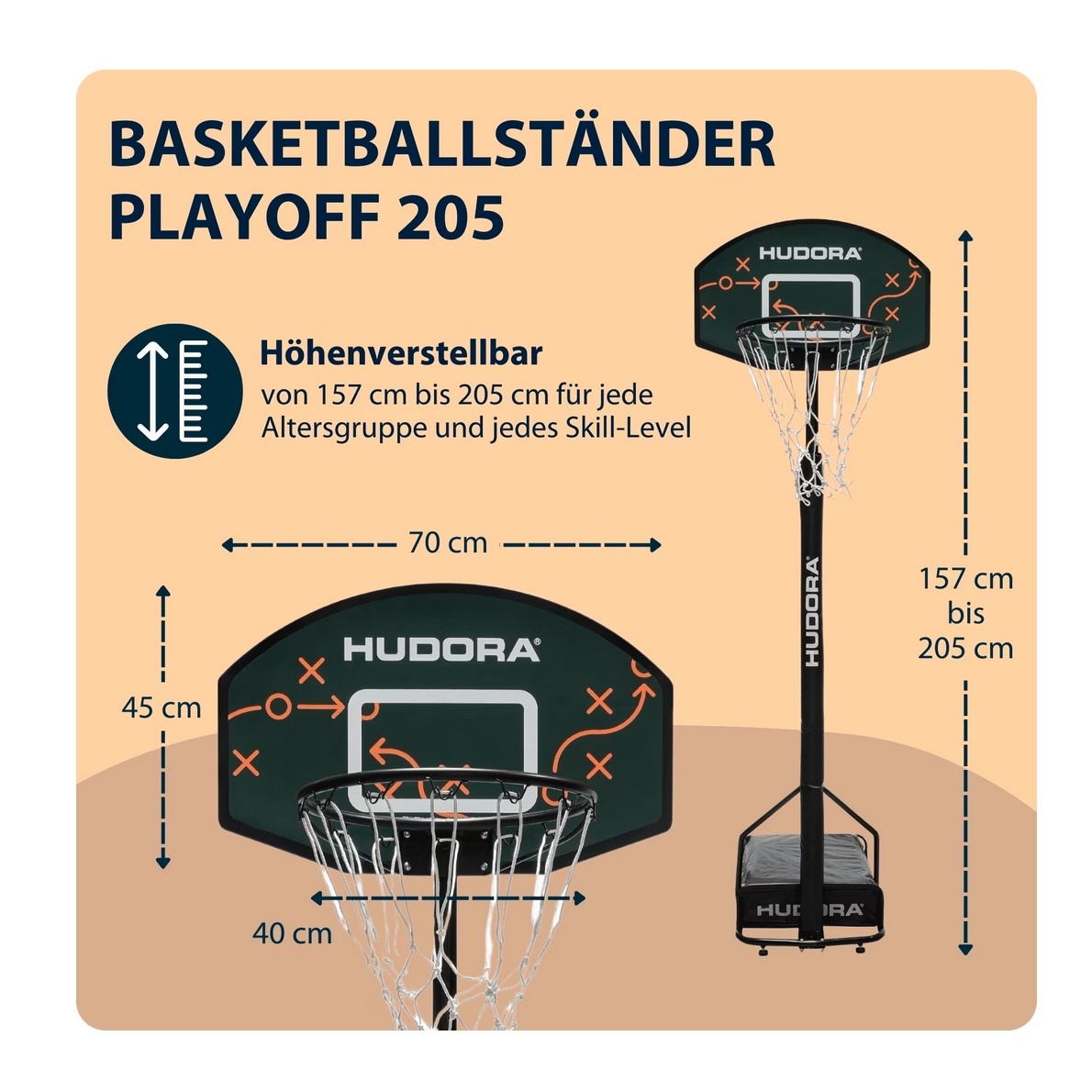 Hudora Basketball Stand Playoff 205 (height adjustable/stable/safe/durable) - 157cm-205cm