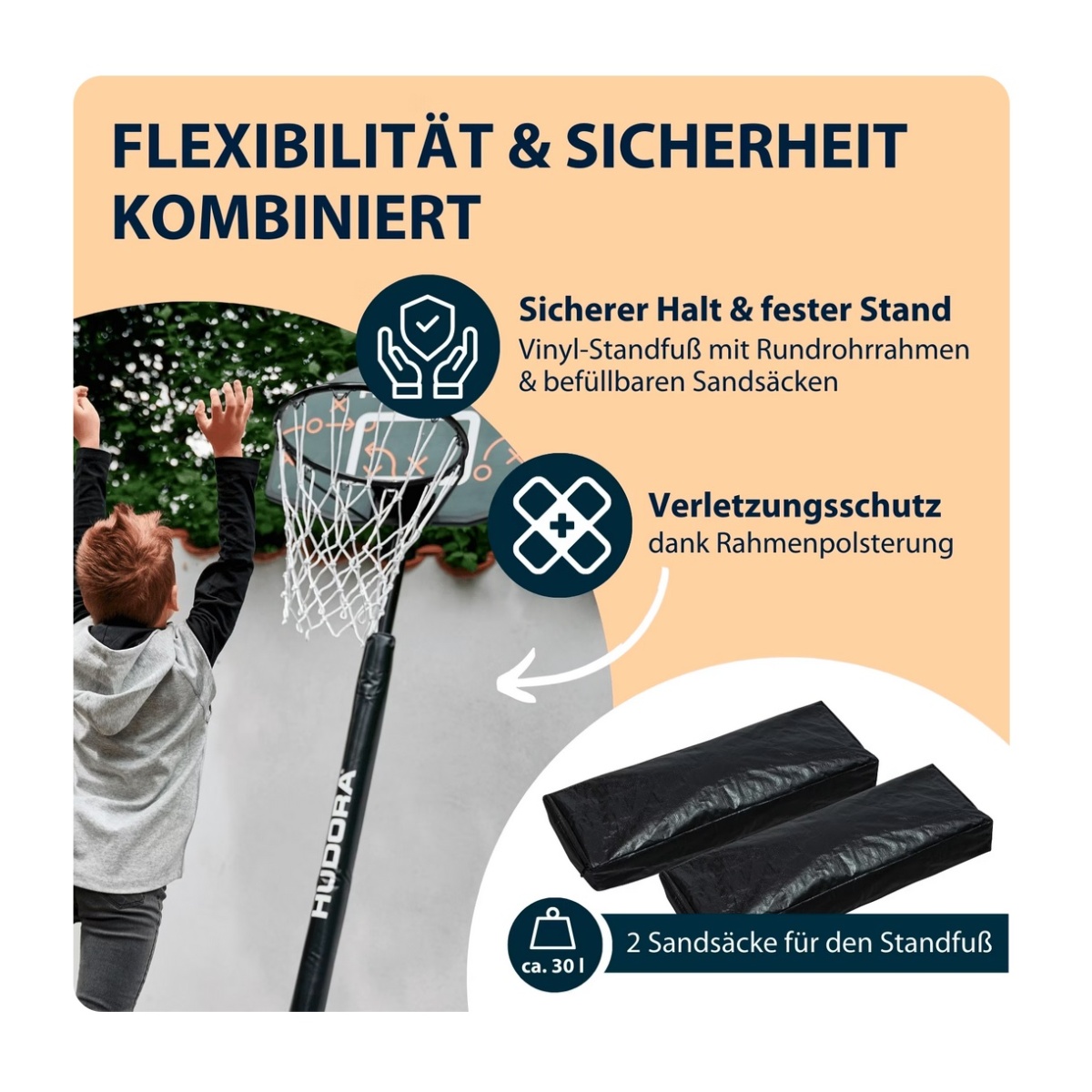 • of course, powerful dunking is also possible – thanks to the stable base and the container that can be filled with sand or water