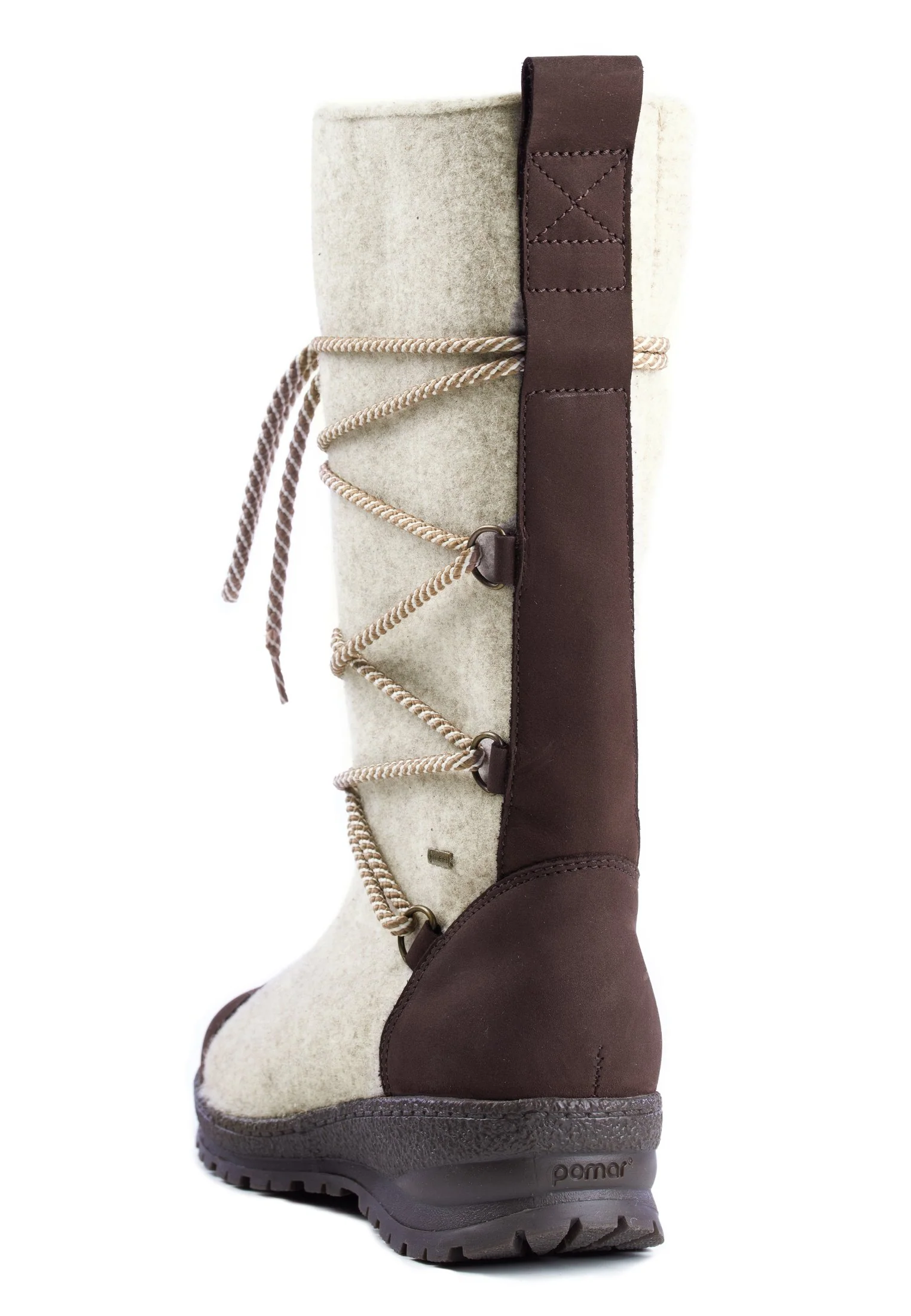 • It is designed for cold temperatures down to -35 °C and features advanced winter properties such as the Pomar Winter GRIP+ sole, wool felt, waterproof and insulating GORE-TEX® PARTELANA lining, protective leather details, and a side zip. All Pomar felt is mulesing-free.