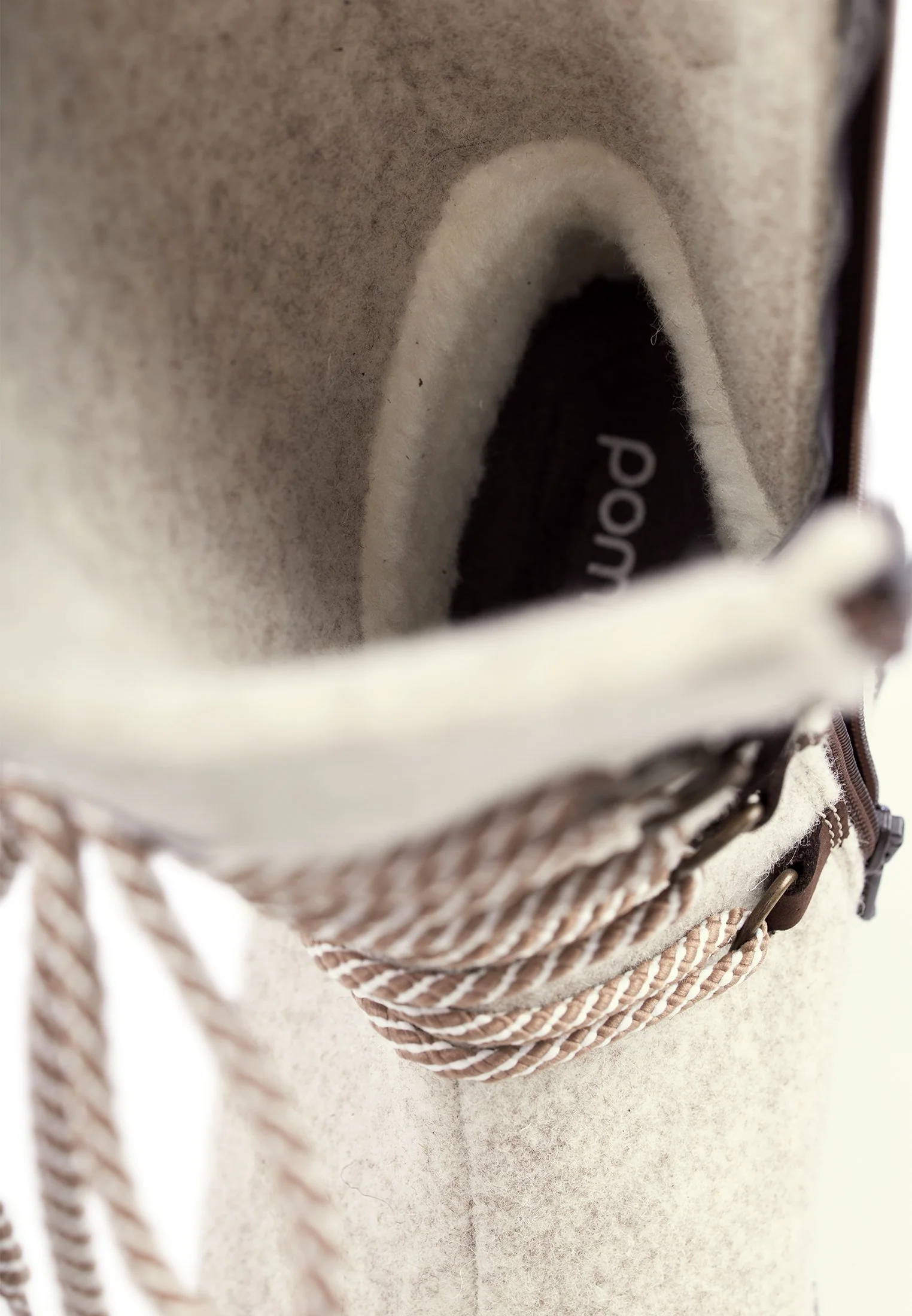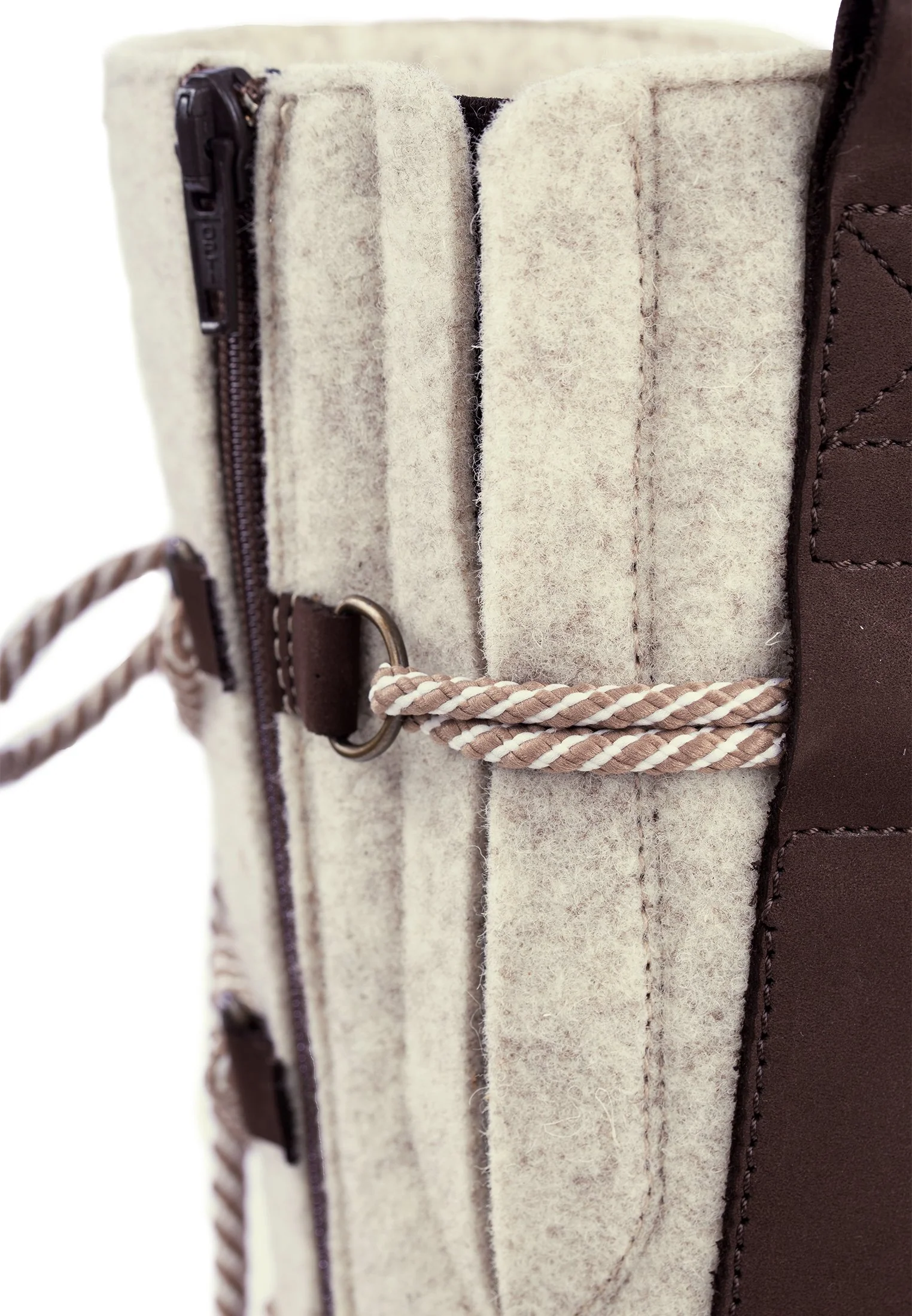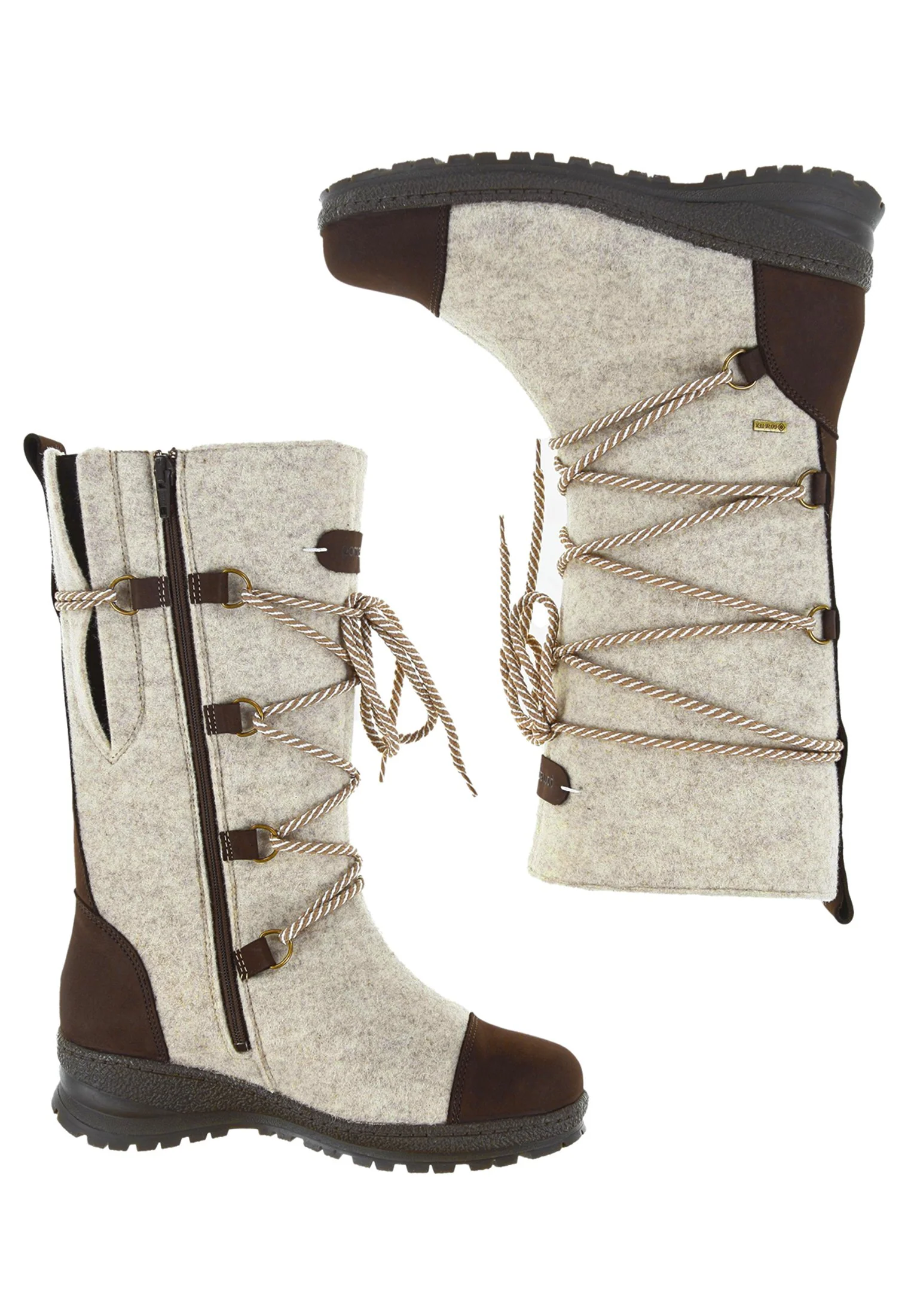 • Upper material: Sand beige wool felt and brown waxed nubuck - water and dirt repellent