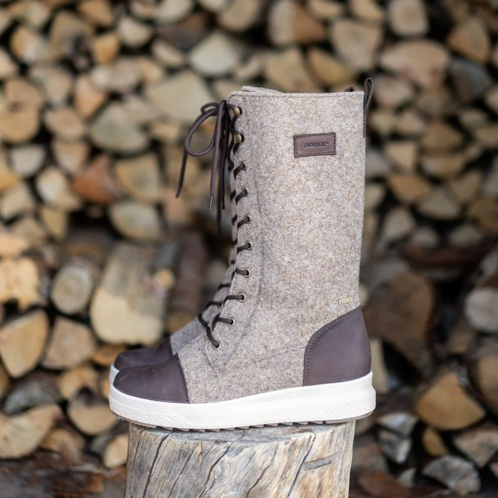 Pomar Winter Boots JÄÄTIKKÖ GTX (Felt Boots, Waterproof, Wide, Extremely Warm) Sand Brown Ladies