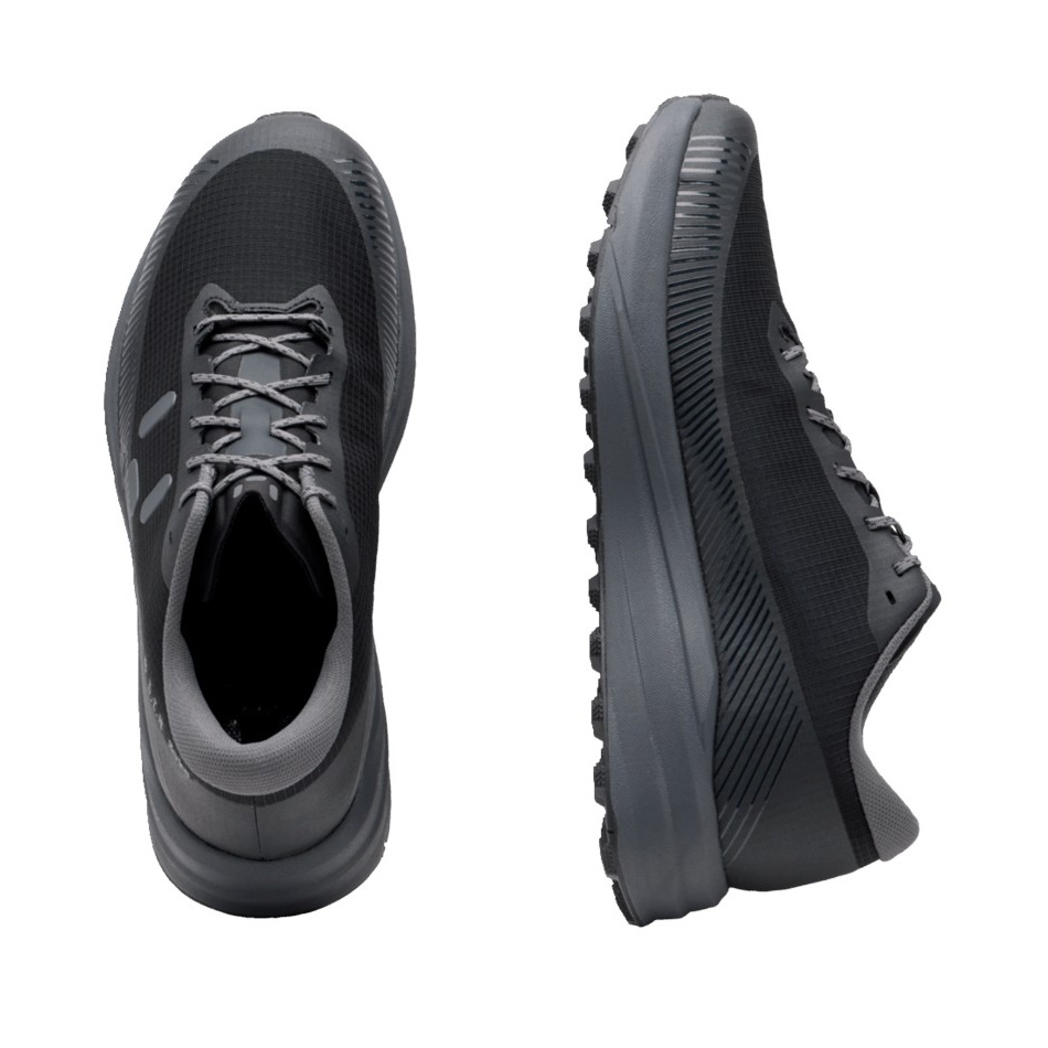 • The upper materials consist of a soft yet durable ripstop, reinforced with abrasion-resistant TPU film overlays on a thin layer of perforated microfiber, which enhances breathability without compromising the stability of the upper material.