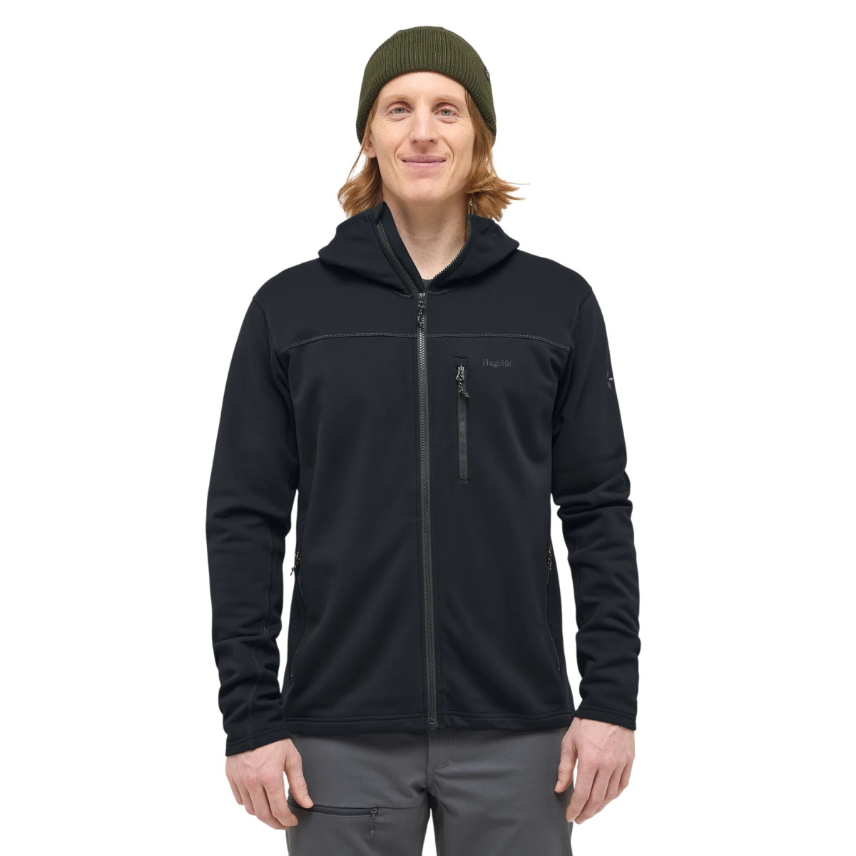 Haglöfs Rosson Fleece Jacket with Hood (Midlayer, 4-Way Stretch Fleece Material) black Men's