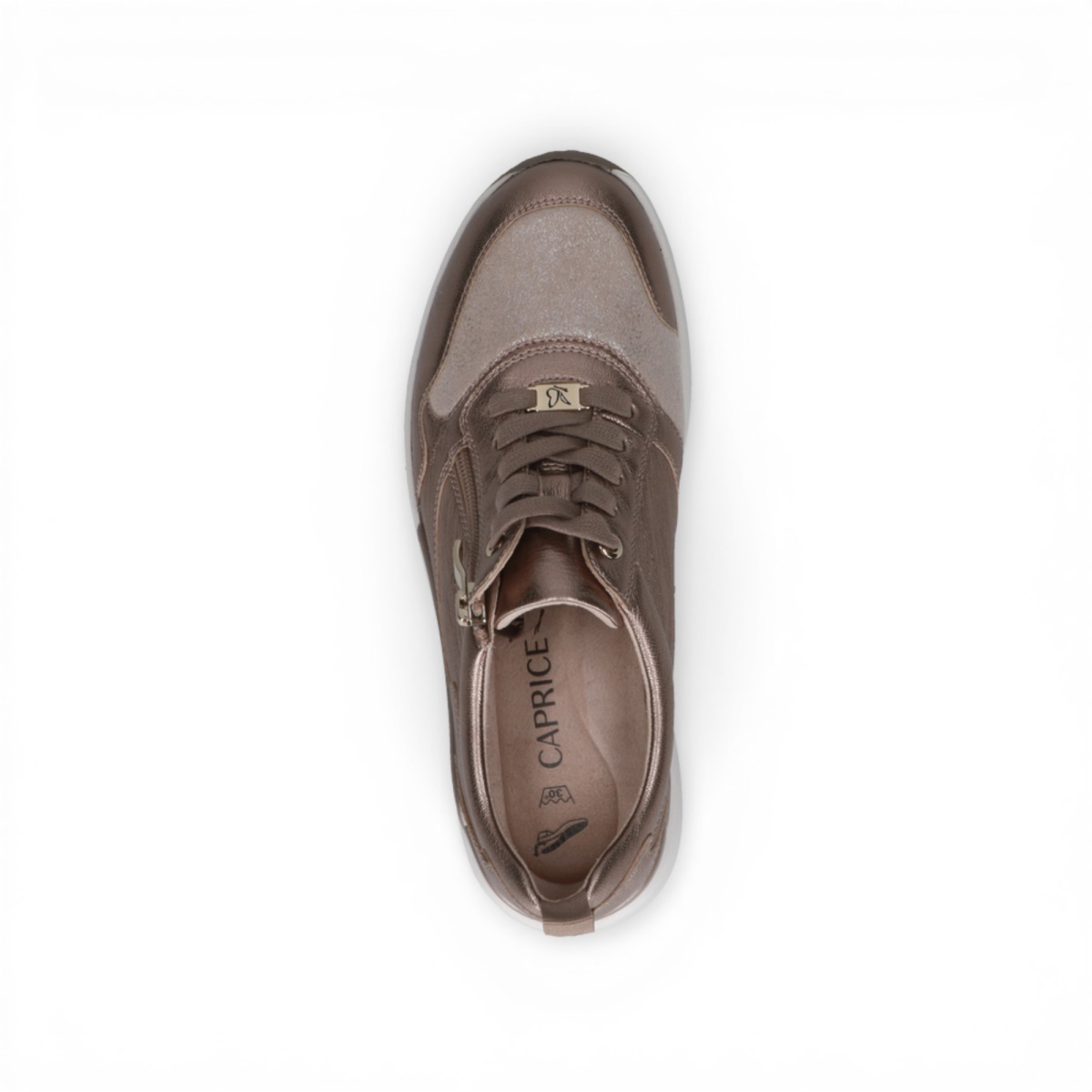 Caprice Sneaker 23760 (leather, with side zip) taupe/gold ladies