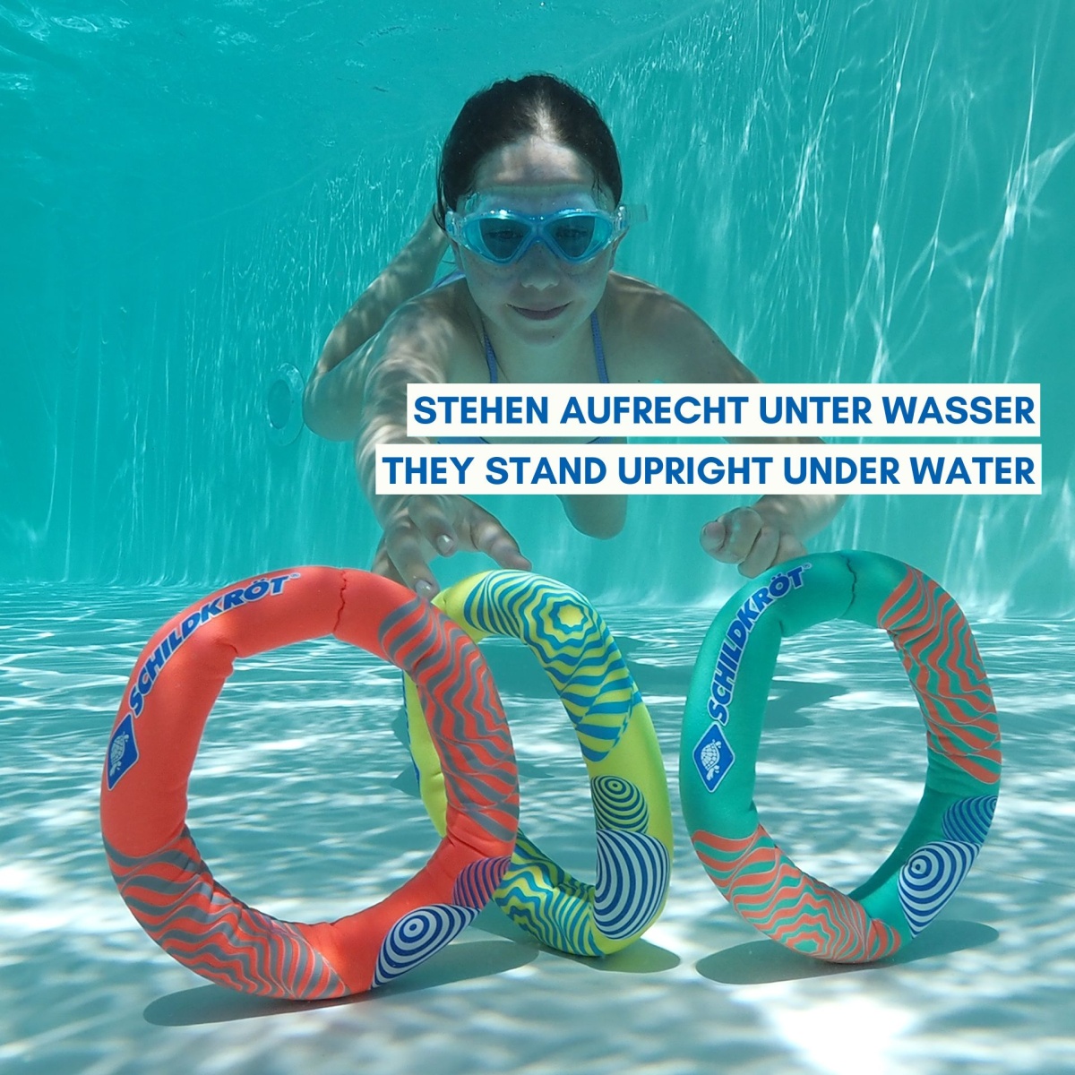 • Thanks to an additional foam insert, the rings stand upright on the bottom underwater, making them easy for children to retrieve
