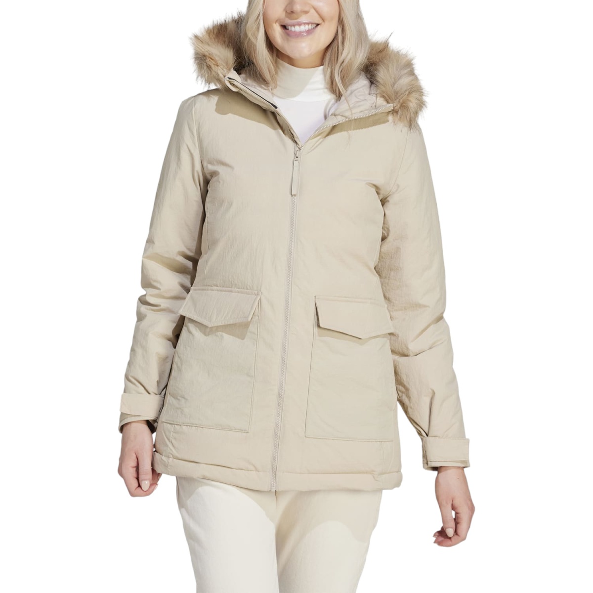 adidas Winter Coat Hooded Fur Parka (water-repellent) beige Ladies