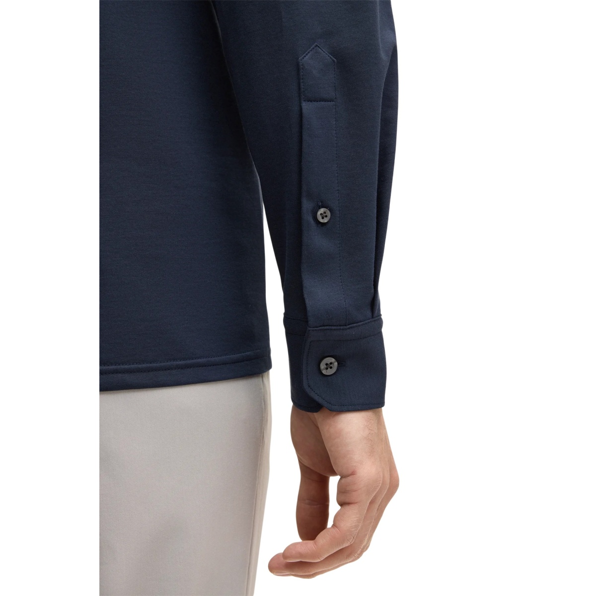 • long sleeves with buttonable cuffs