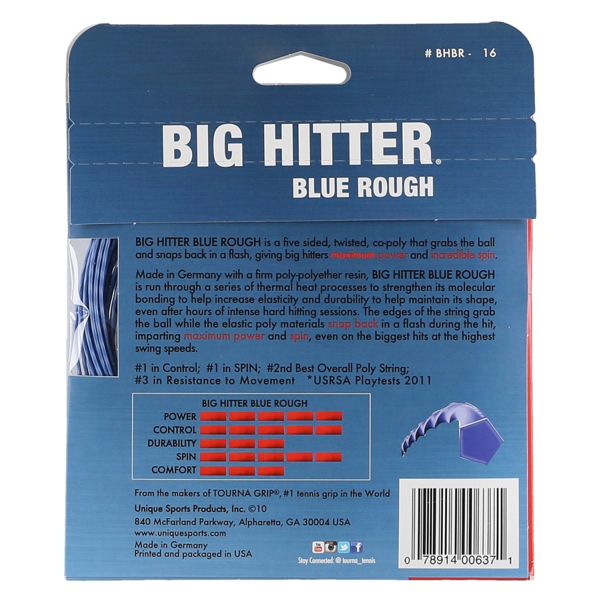Tourna Tennis String Big Hitter Rough (Durability+Spin) blue 220m roll